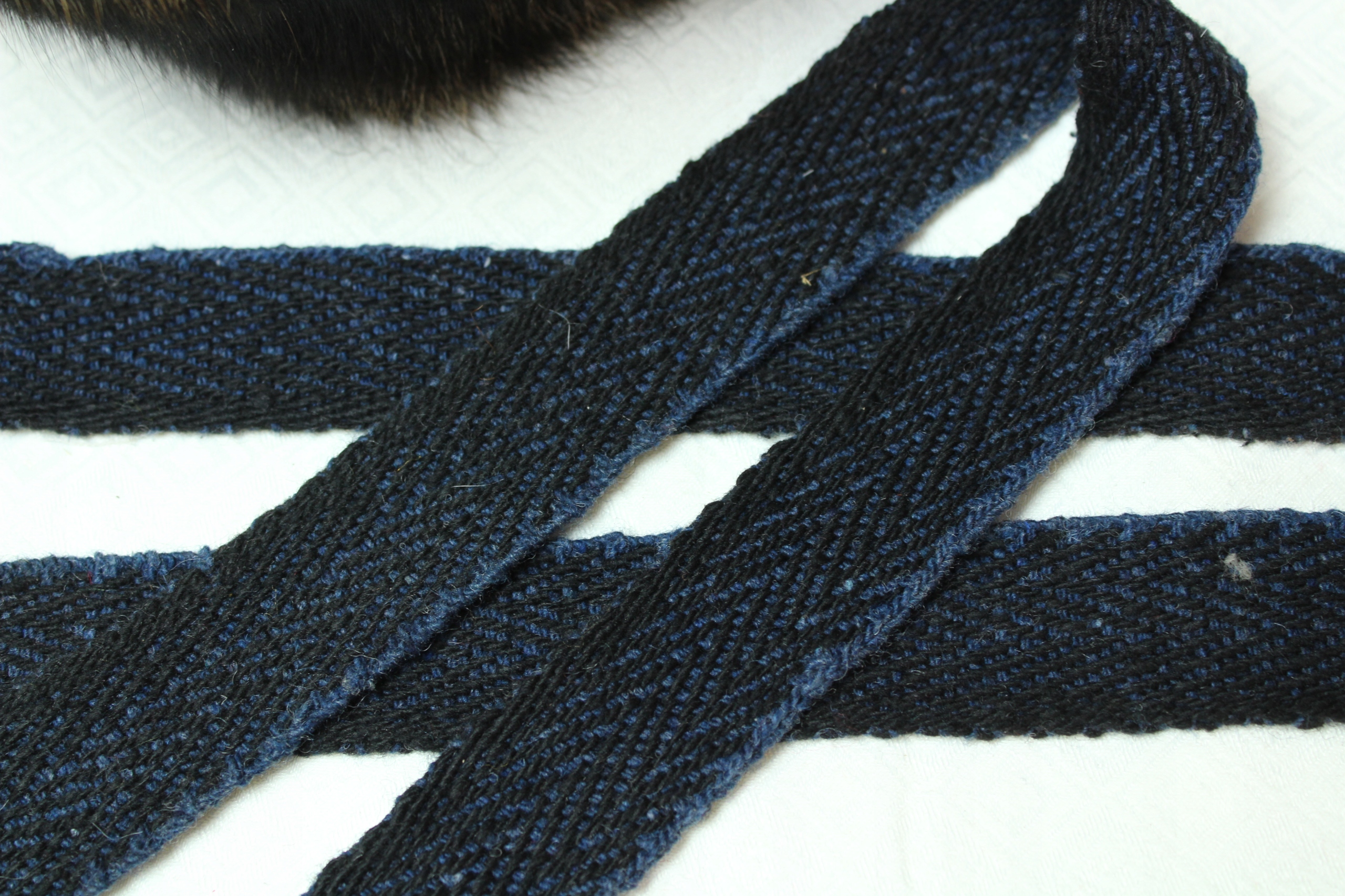 Krajka 3 cm jodełka Ręcznie Tkana 1mb CZARNO-NIEBIESKA 100% WEŁNA