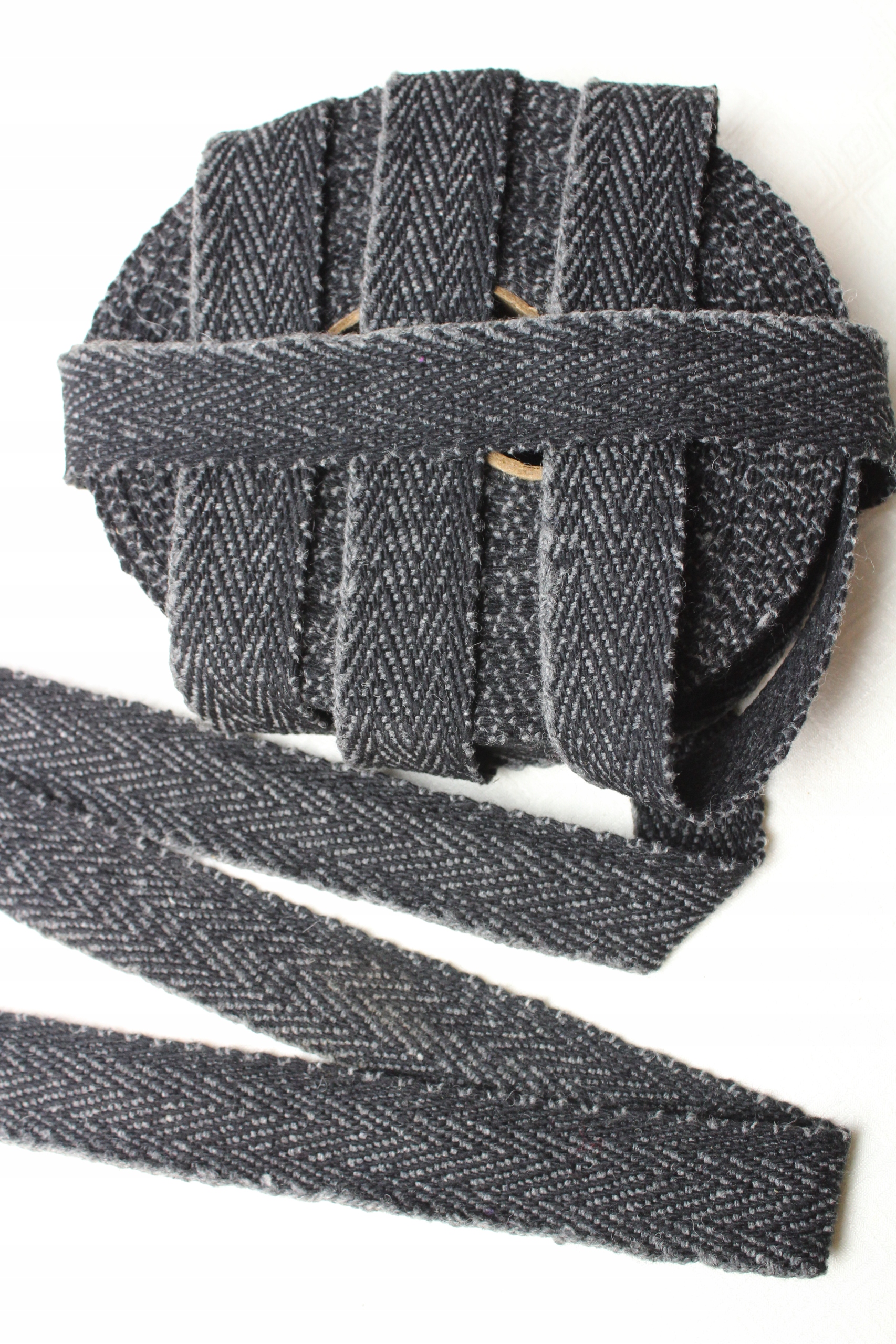 Krajka 3 cm jodełka Ręcznie Tkana 1mb CZARNO-SZARA 100% WEŁNA