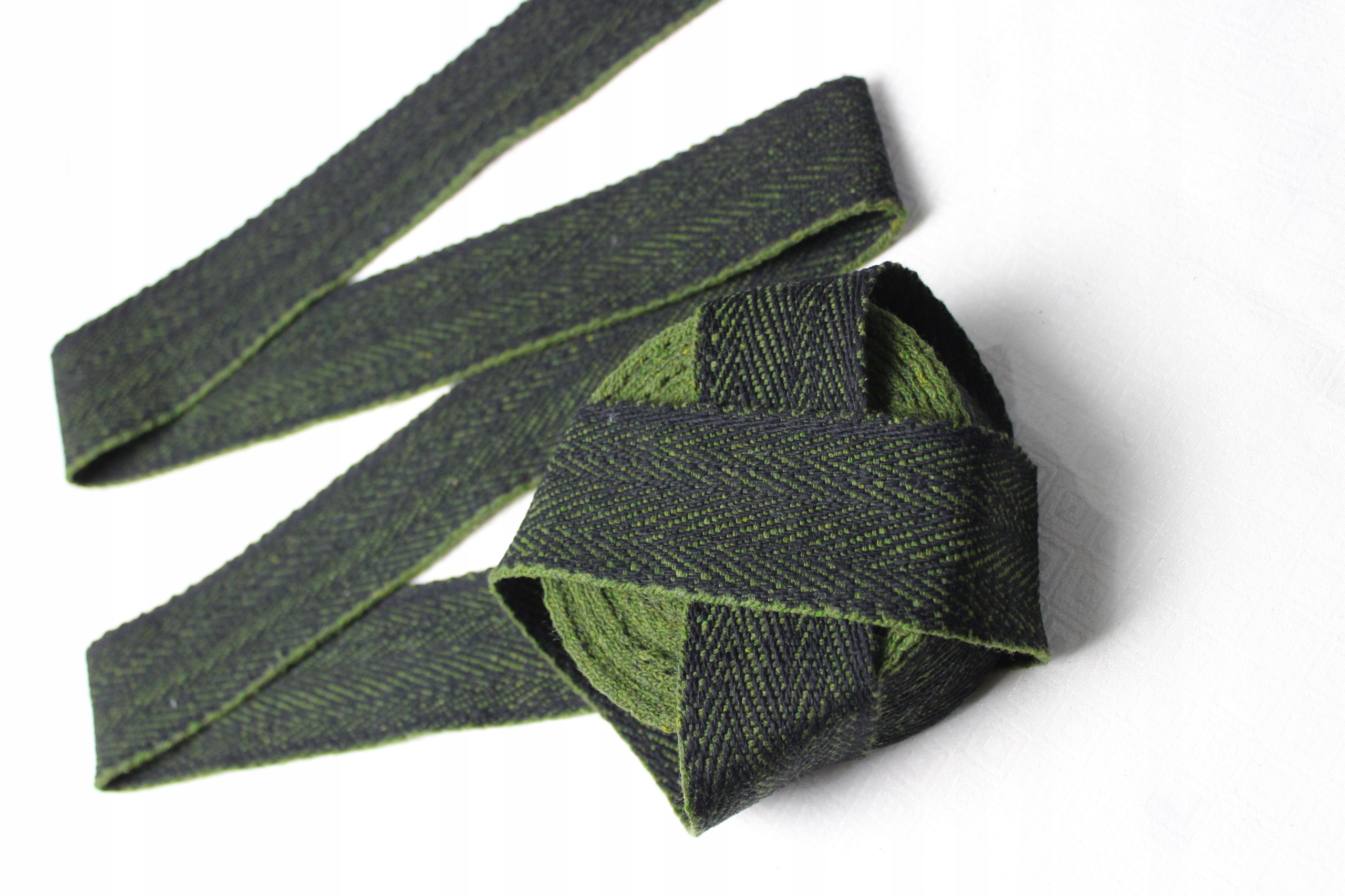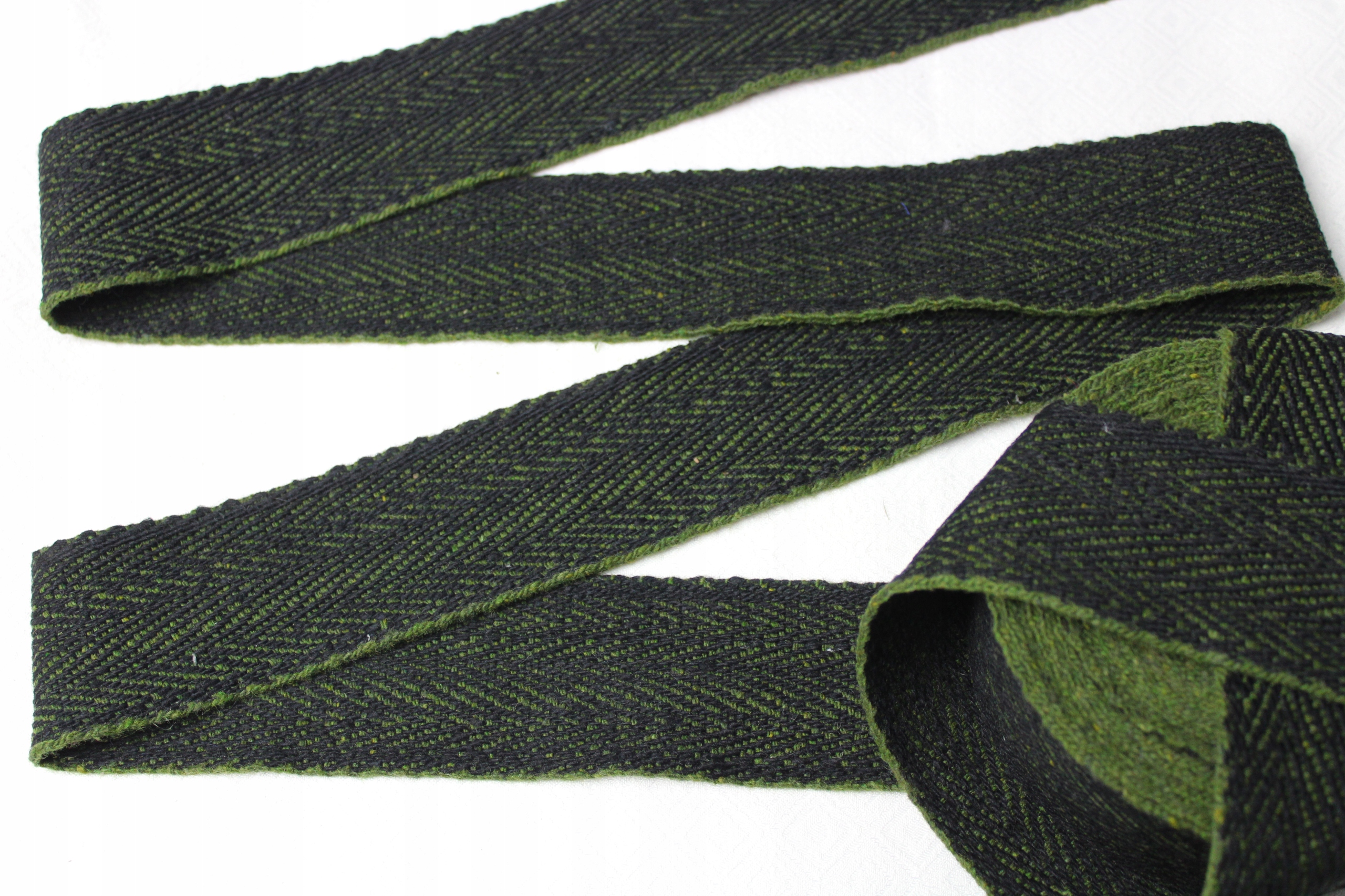 Krajka 5 cm jodełka Ręcznie Tkana 1mb CZARNO-ZIELONA 100% WEŁNA