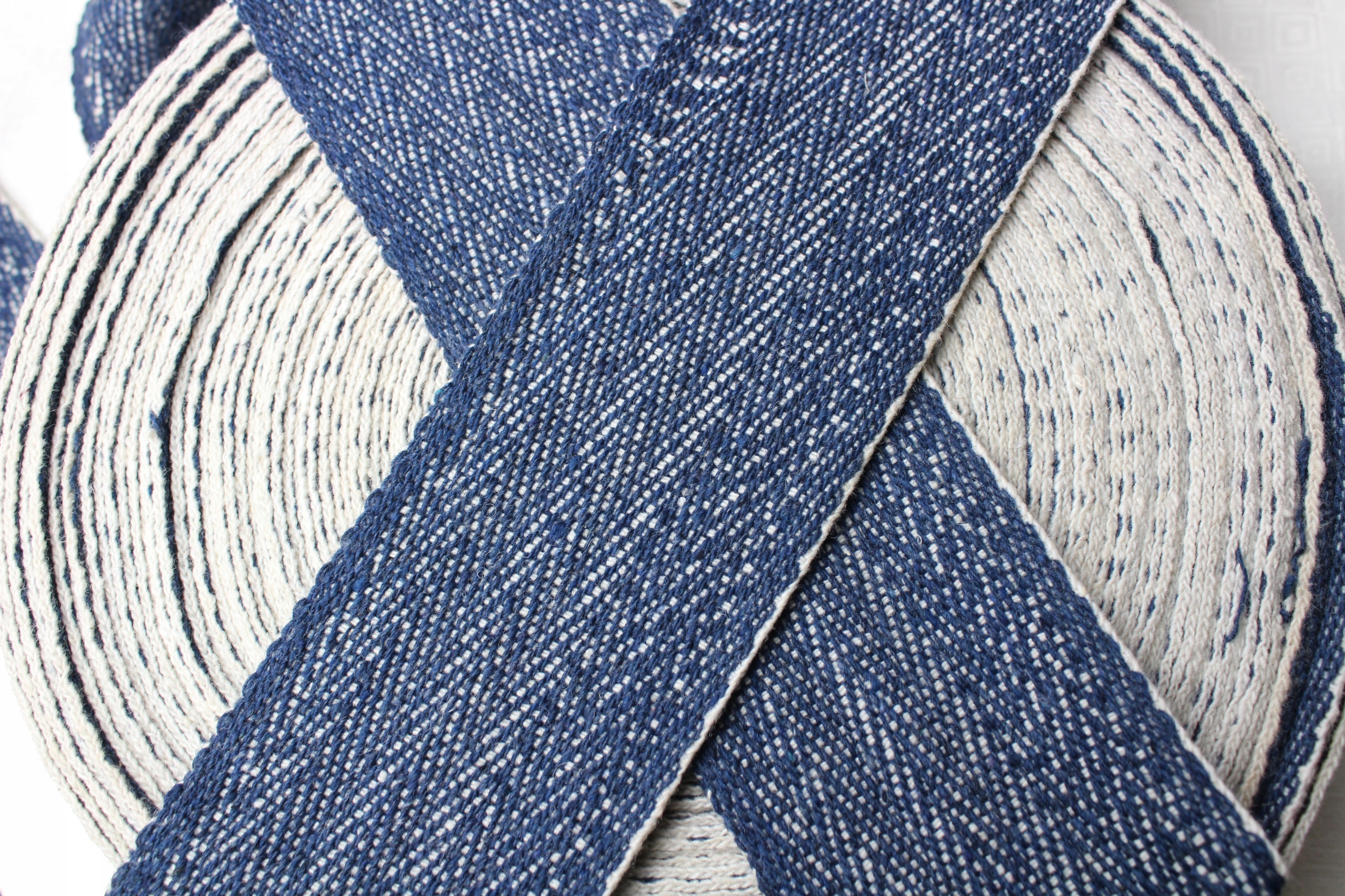 Krajka Ręcznie Tkana, Owijacze 8 cm, NIEBIESKO-BIAŁE 100% wełna 1 metr
