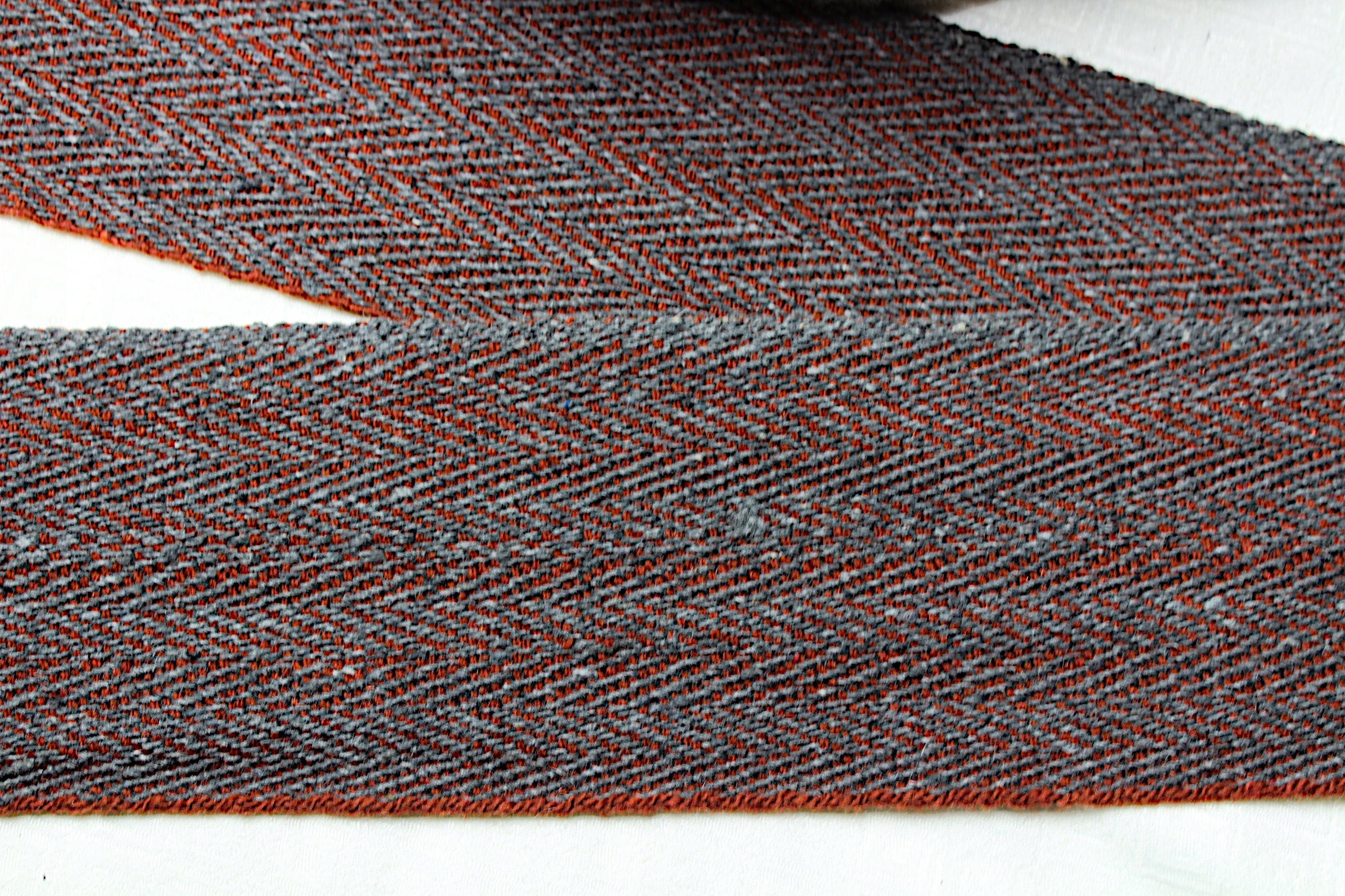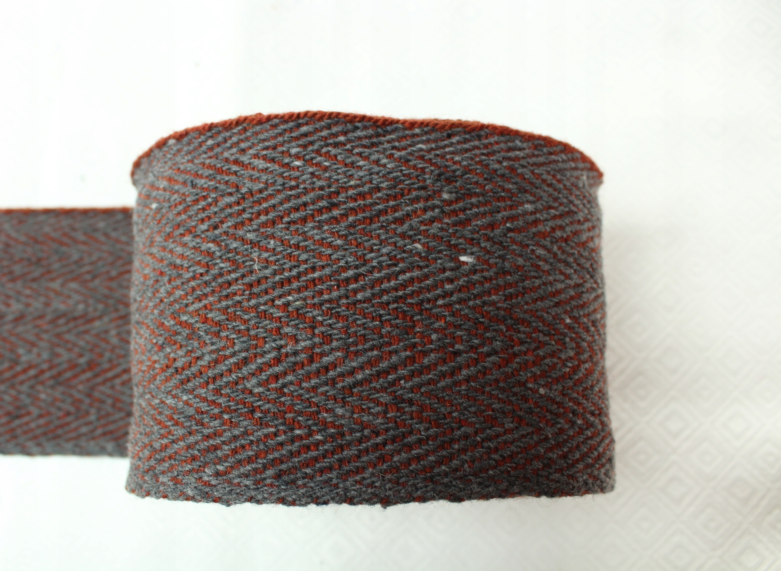 Krajka Ręcznie Tkana, Owijacze 8 cm, SZARO-CZERWONY, 100% wełna 1 metr