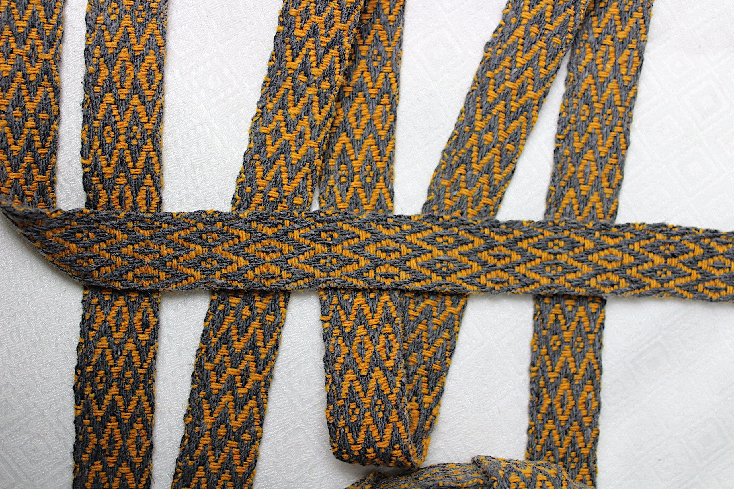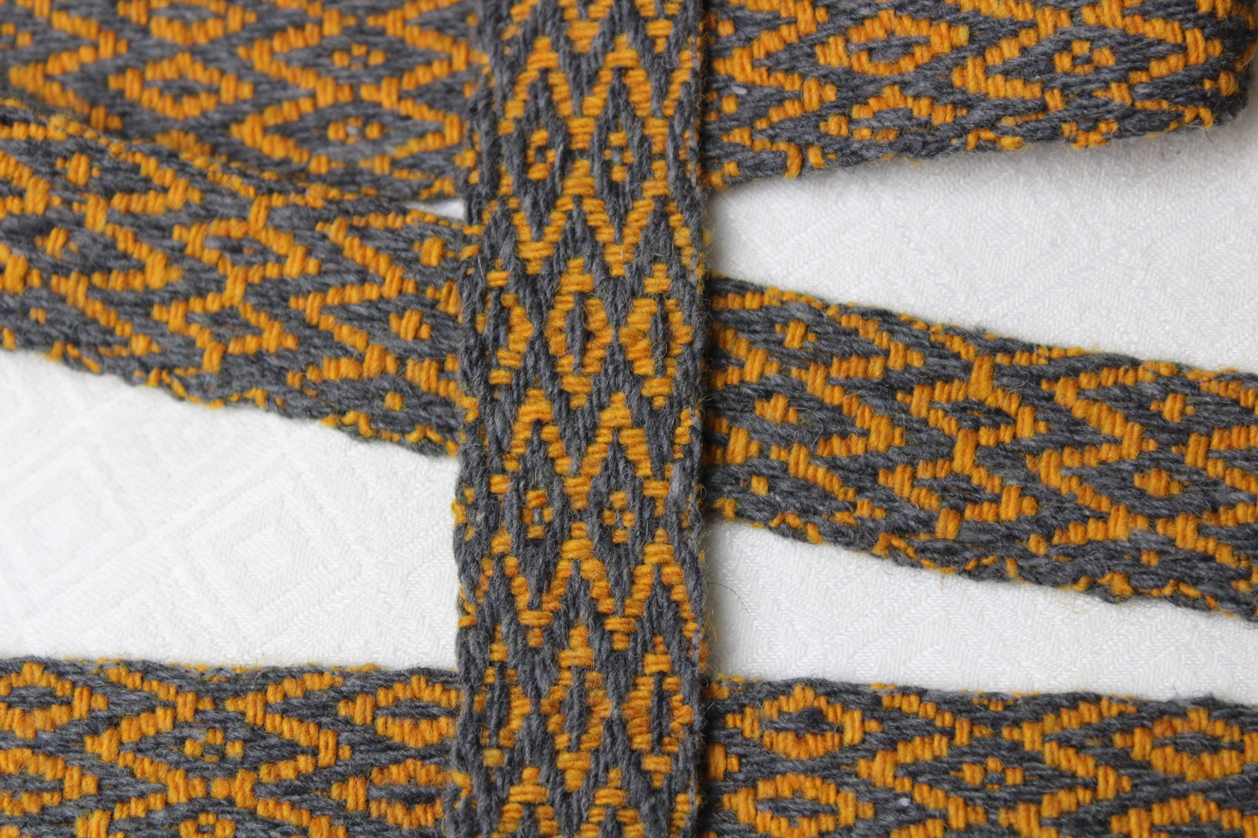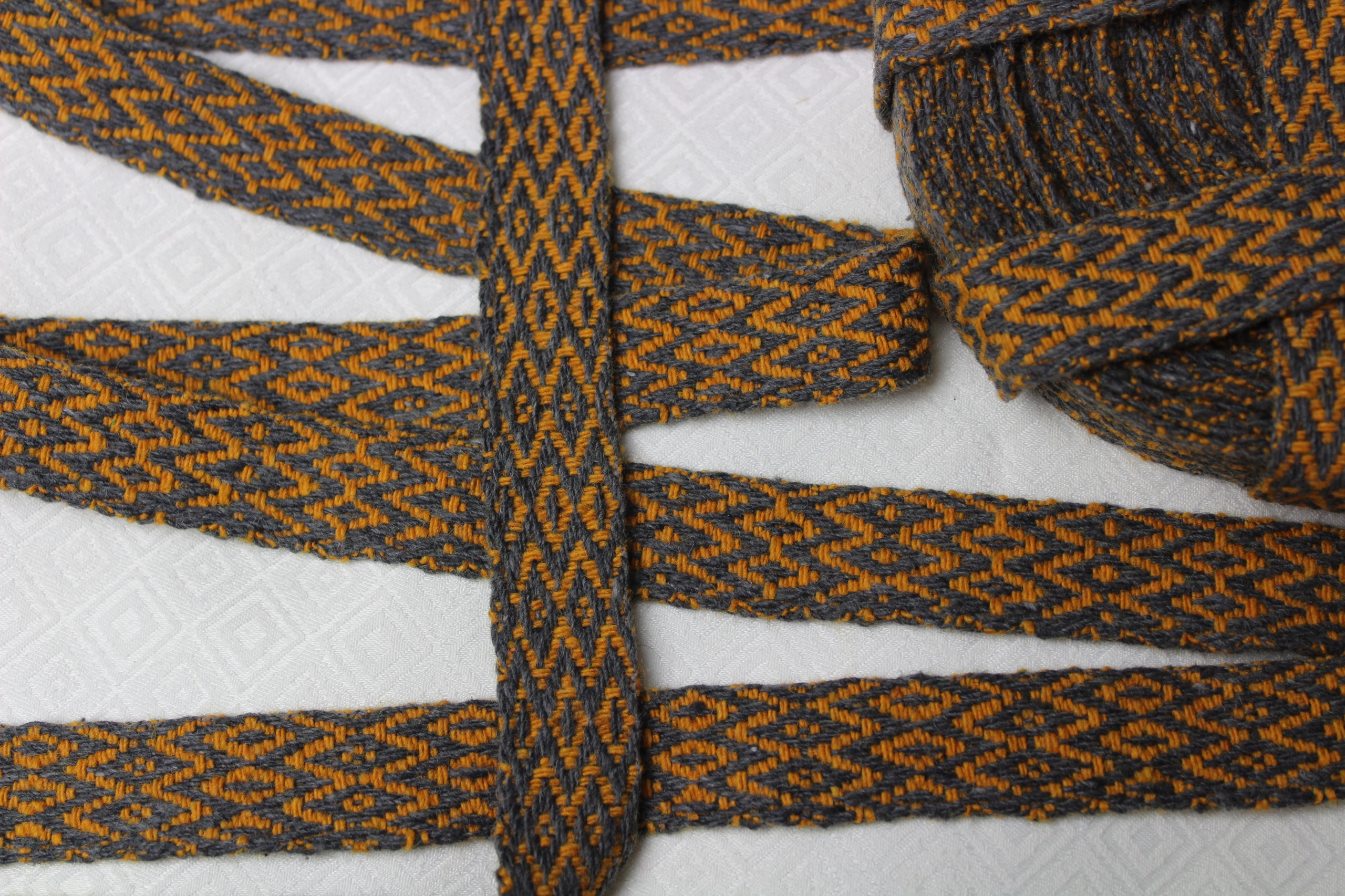 Krajka wełniana 24 mm DIAMENT Ręcznie Tkana 1mb SZARO-ŻÓŁTY 100% WEŁNA