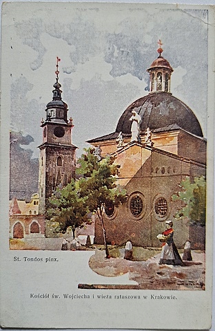 - ОТКРЫТКА - КРАКОВ - ЦЕРКОВЬ СВЯТОГО АДАМА И РАТУШНАЯ БАШНЯ В КРАКОВЕ - Св. ТОНДОС - фотография