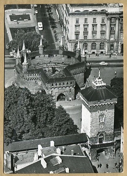 КРАКОВ :: Флорианские ворота и Барбакан - Вид ::: старая открытка, из обращения, с маркой