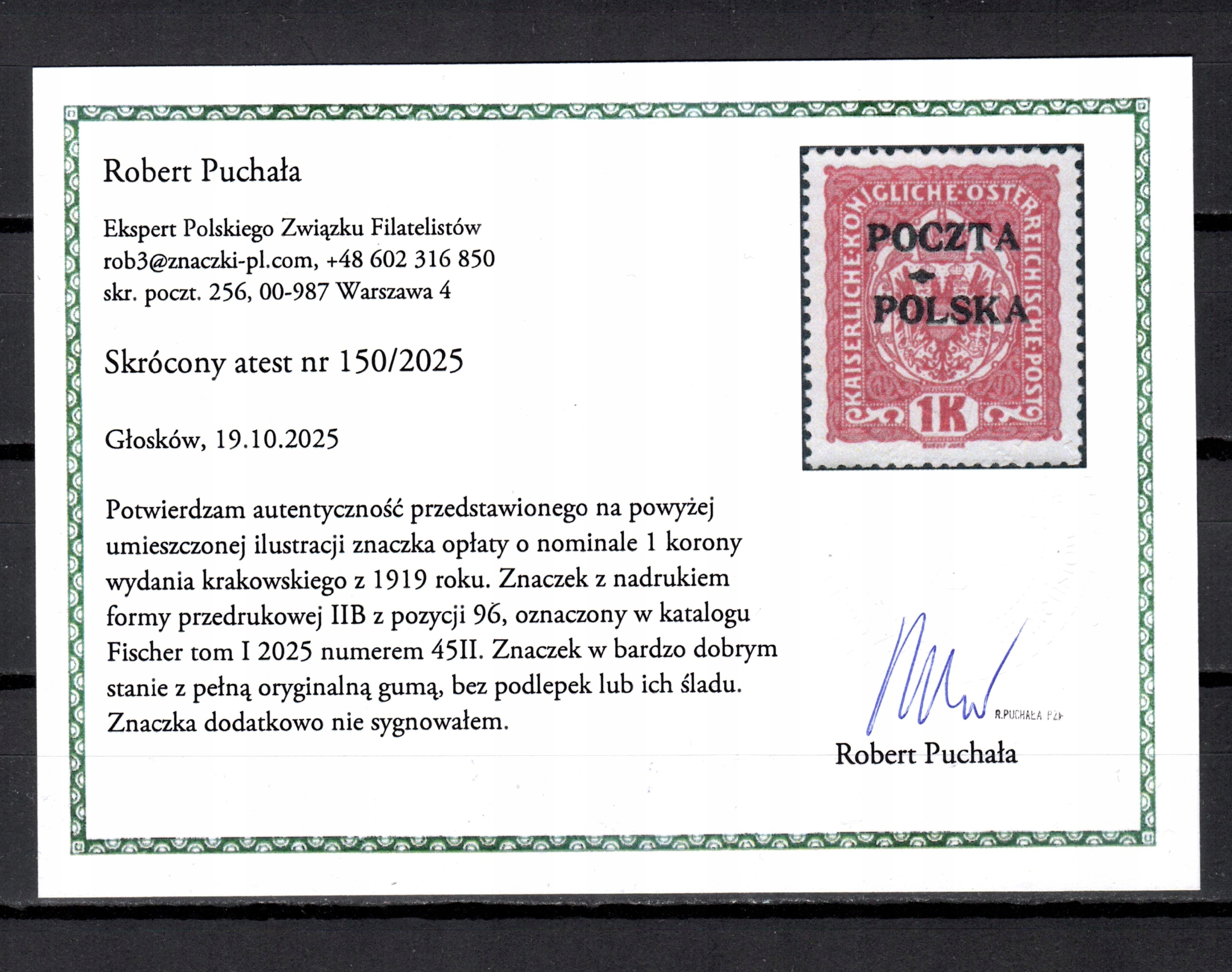 Просматривая «Краків Fi 45** FORMA II B - АТЕСТ, ІДЕАЛЬНИЙ СТАН, FISCHER 2026 - 2400 ZŁ», вы можете быть уверены, что данный товар из каталога «1918 - 1939» будет доставлен из Польши и проверен на целостность. В цене товара, указанной на сайте, учтена доставка из Польши. Внимание!!! Товары для Евросоюза, согласно законодательству стран Евросоюза, могут отличаться упаковкой или наполнением.