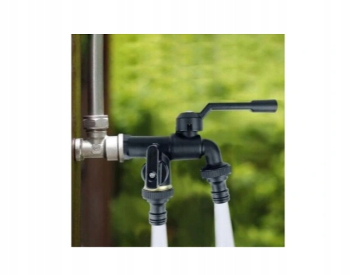 - Этот смеситель с двойным выпуском позволяет подключать два шланга одновременно, что делает его чрезвычайно удобным для выполнения нескольких задач.