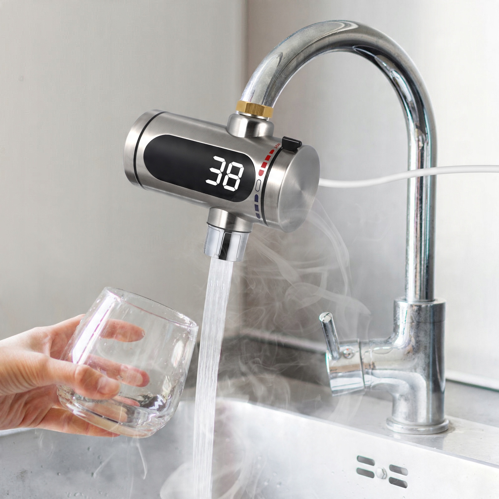 НАГРЕВАТЕЛЬ ГОРЯЧЕЙ ВОДЫ ИЗ НЕРЖАВЕЮЩЕЙ СТАЛИ ЦИФРОВОЙ СВЕТОДИОДНЫЙ ДИСПЛЕЙ - ВИЛКА ЕС