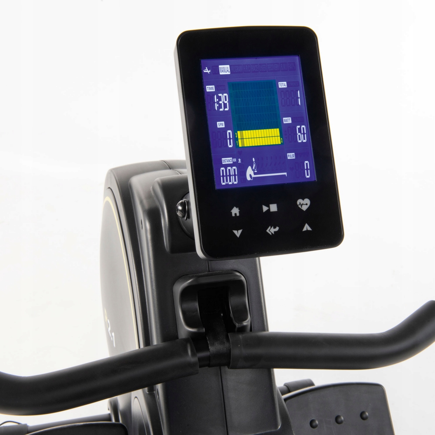 Гребной тренажер управляется через тренировочный компьютер. Он предлагает четыре настраиваемых пользовательских профиля. Сопротивление можно регулировать с помощью электроники на 16 уровнях.