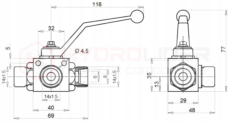 КРАН КУЛЬОВИЙ 3/2 M14x1.5 10L 350bar ГІДРОЛІДЕР