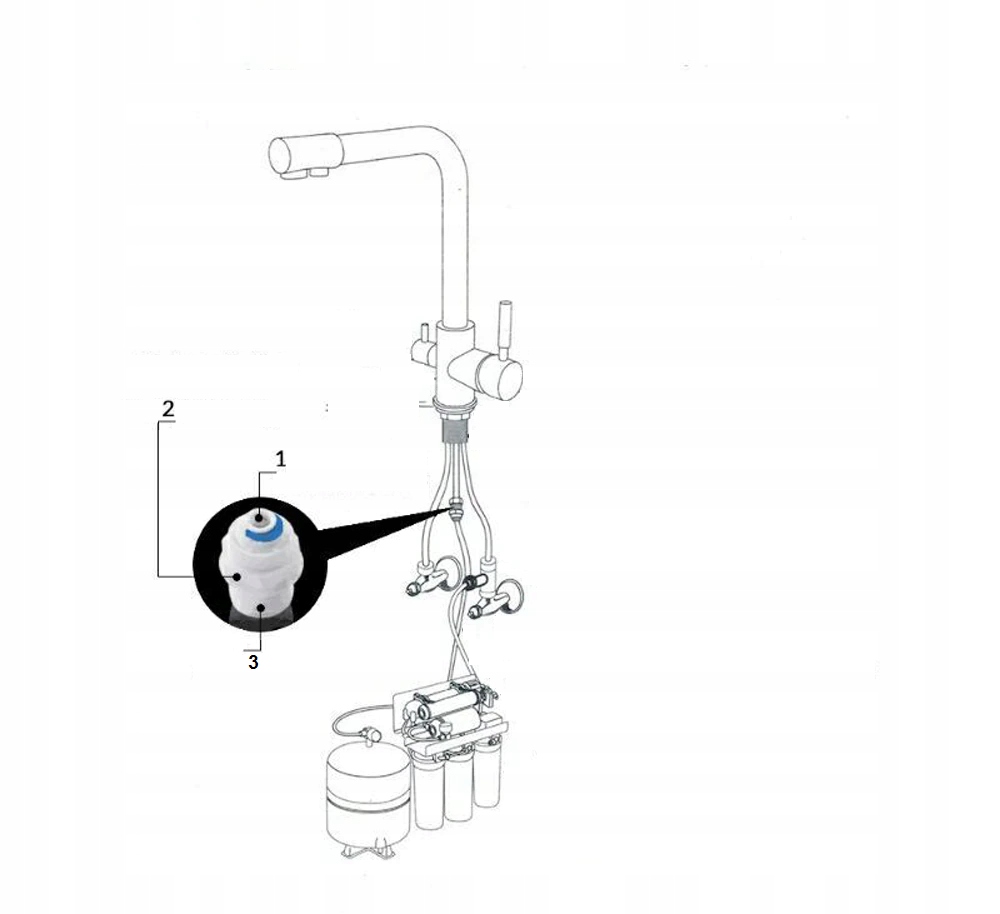 3-ходовой смеситель гарантирует, что неочищенная водопроводная вода (холодная и горячая) не будет смешиваться с фильтрованной водой из фильтра. Трёхходовой кран должен иметь два независимых контура: для водопроводной воды со смешением горячей воды и холодной. для фильтрованной воды (фильтрованная вода не смешивается с водопроводной водой)