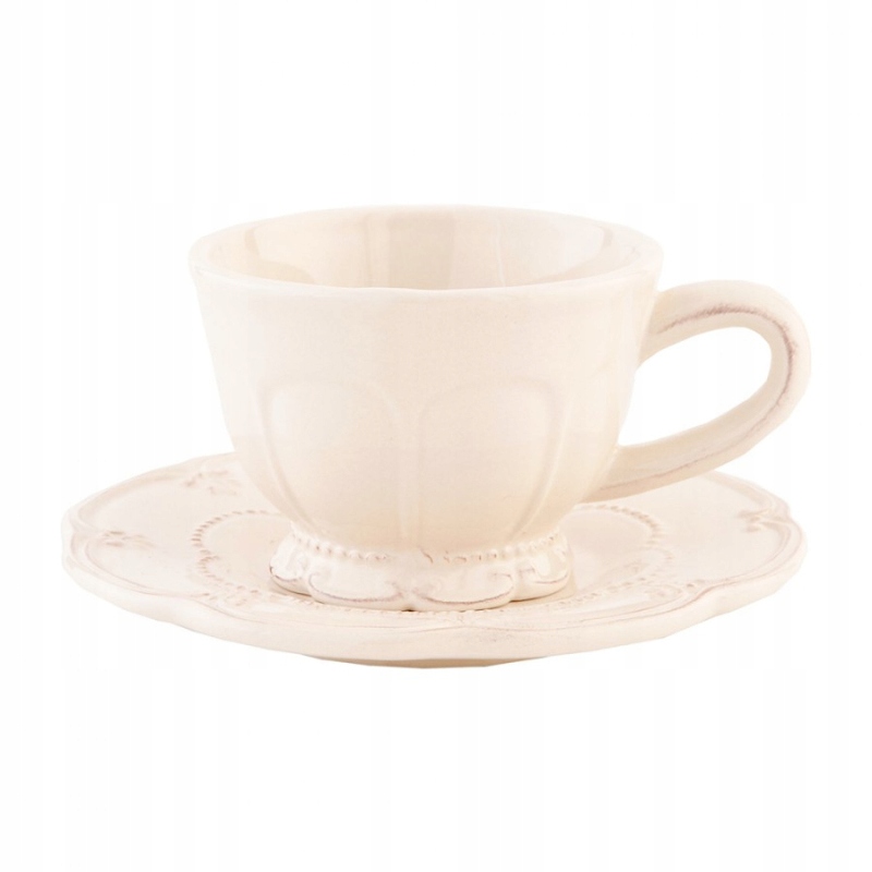 Пятнистая чашка и блюдце - 13х9х7 см.