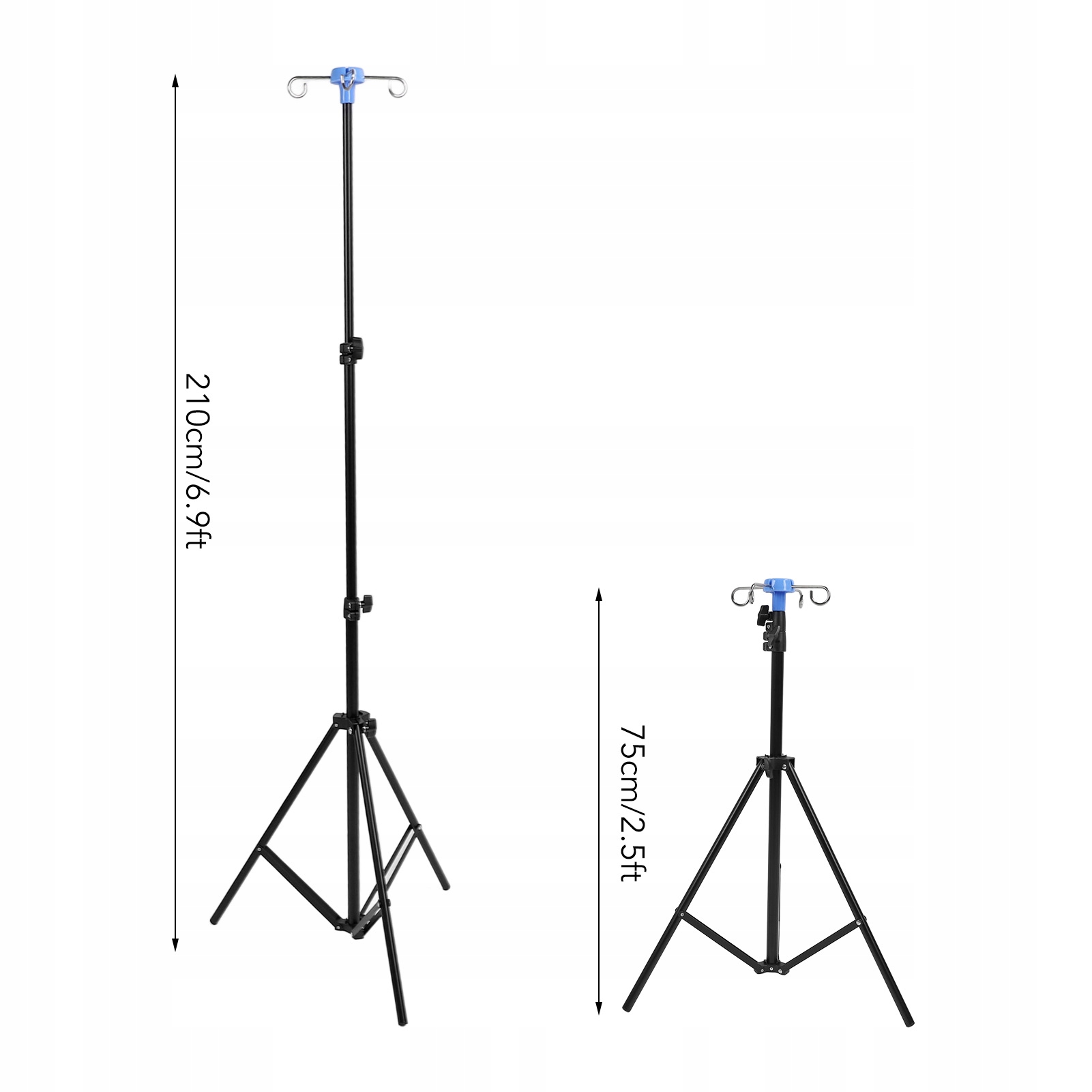 2. Регулируемая конструкция: подставка для IV регулируется, диапазон высоты 75–210 см, складывание, простой в использовании; 4 крючка и 3 ножки, стабильные и надежные. База штатива обеспечивает стабильность, предотвращая шаткие и наклоны.