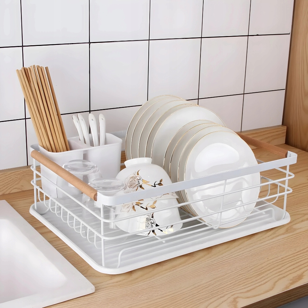 КРАПЕЛЬНИЦЯ ДЛЯ СУШІННЯ ПОСУДУ ДЛЯ СТОЛОВИХ ПРИБОРІВ З БІЛИМ ПІДНОШЕННЯМ