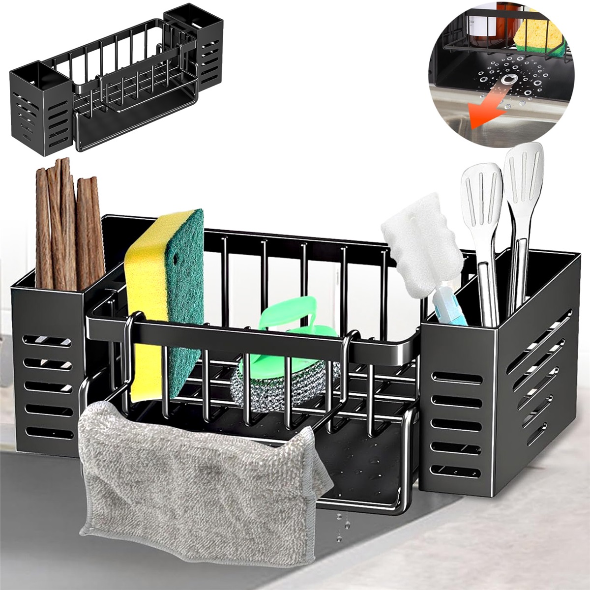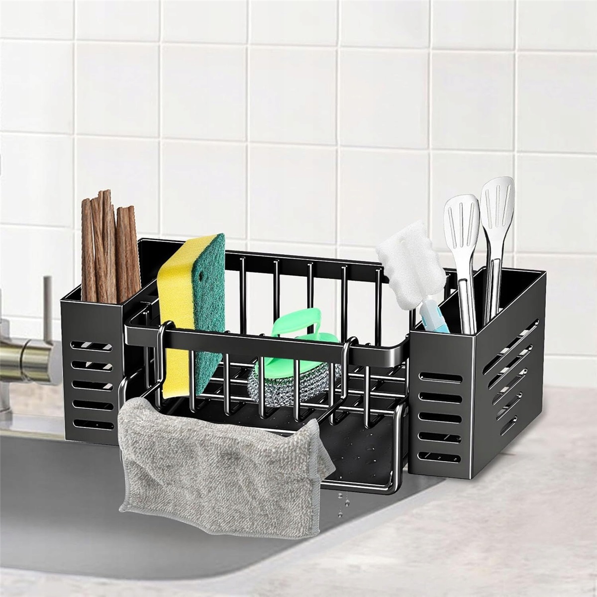 🗃️ Универсальное место для хранения. Органайзер оснащен двумя практичными отделениями из нержавеющей стали, в которых можно разместить щетки, губки, кухонные принадлежности и аксессуары. Идеально подходит для организации хаоса у раковины!