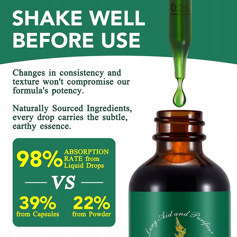 - Ощутите жизненную силу натуральных капель экстракта листьев коровяка, поскольку он естественным образом поддерживает очищение легких и помогает улучшить здоровье дыхательных путей.