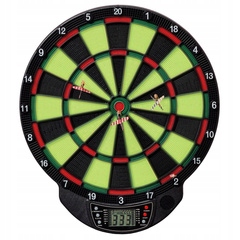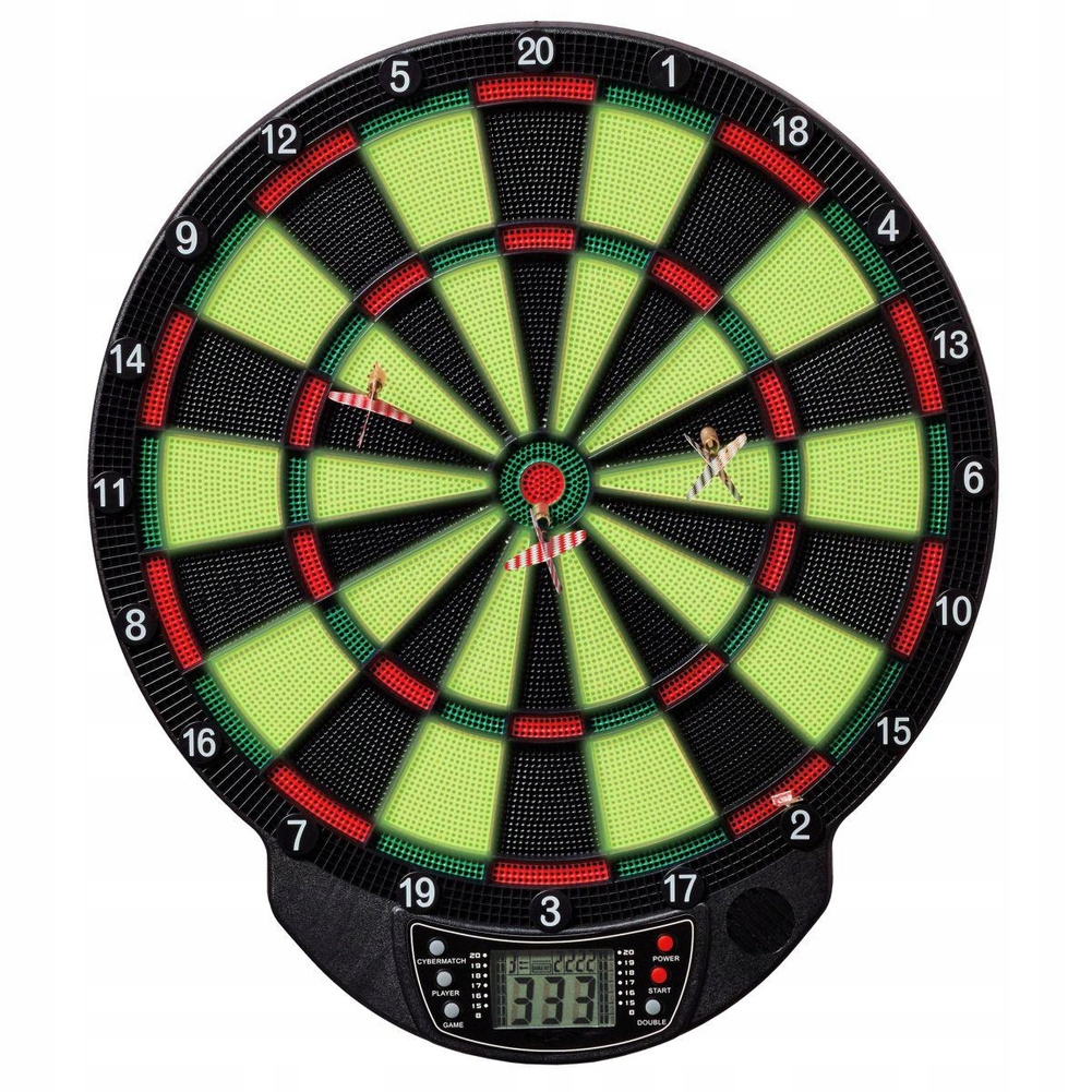 Потрясающее развлечение, привнесение элемента соревнования и высокого уровня геймплея – отличный способ снять стресс. Вы можете использовать щит в одиночку или с семьей или друзьями. С помощью этого дротика, питающегося от 3-х батареек ААА 1,5, вы сможете играть в турниры с участием до 8 человек одновременно или в одиночку с кибер-противником, а 21 режим игры, включая 65 вариантов, позволят вам выбрать идеальный вариант развлечения.