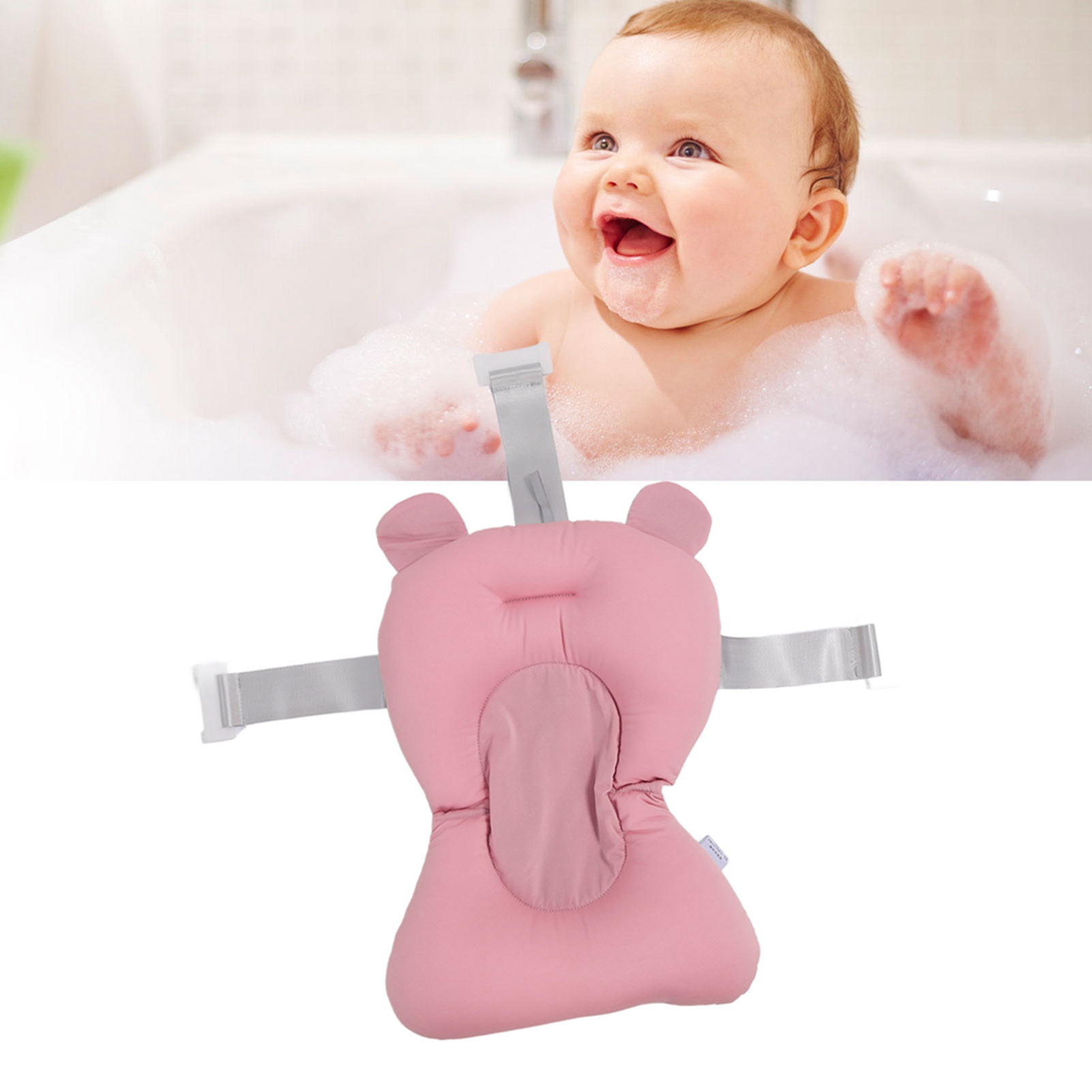 2. Подключаемый коврик для ванны: коврик для ванны для новорожденного оснащен 3 ремнями безопасности с пряжками, которые можно прикрепить к ванне. После закрепления подушка для ванны не будет скользить и двигаться, обеспечивая стабильную и надежную поддержку тела ребенка и душевное спокойствие матери.