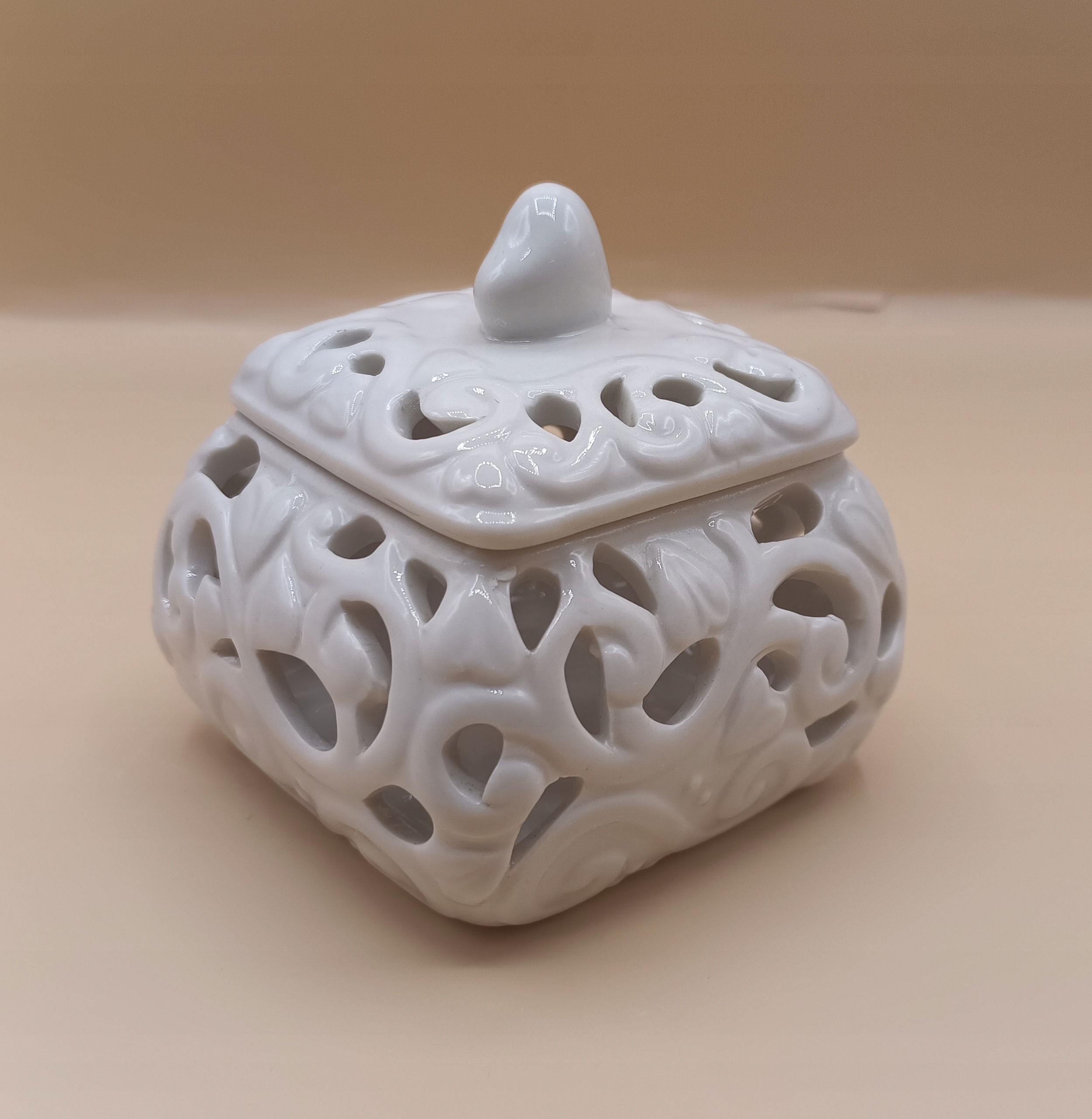 Красивая ажурная белая фарфоровая емкость-шкатулка