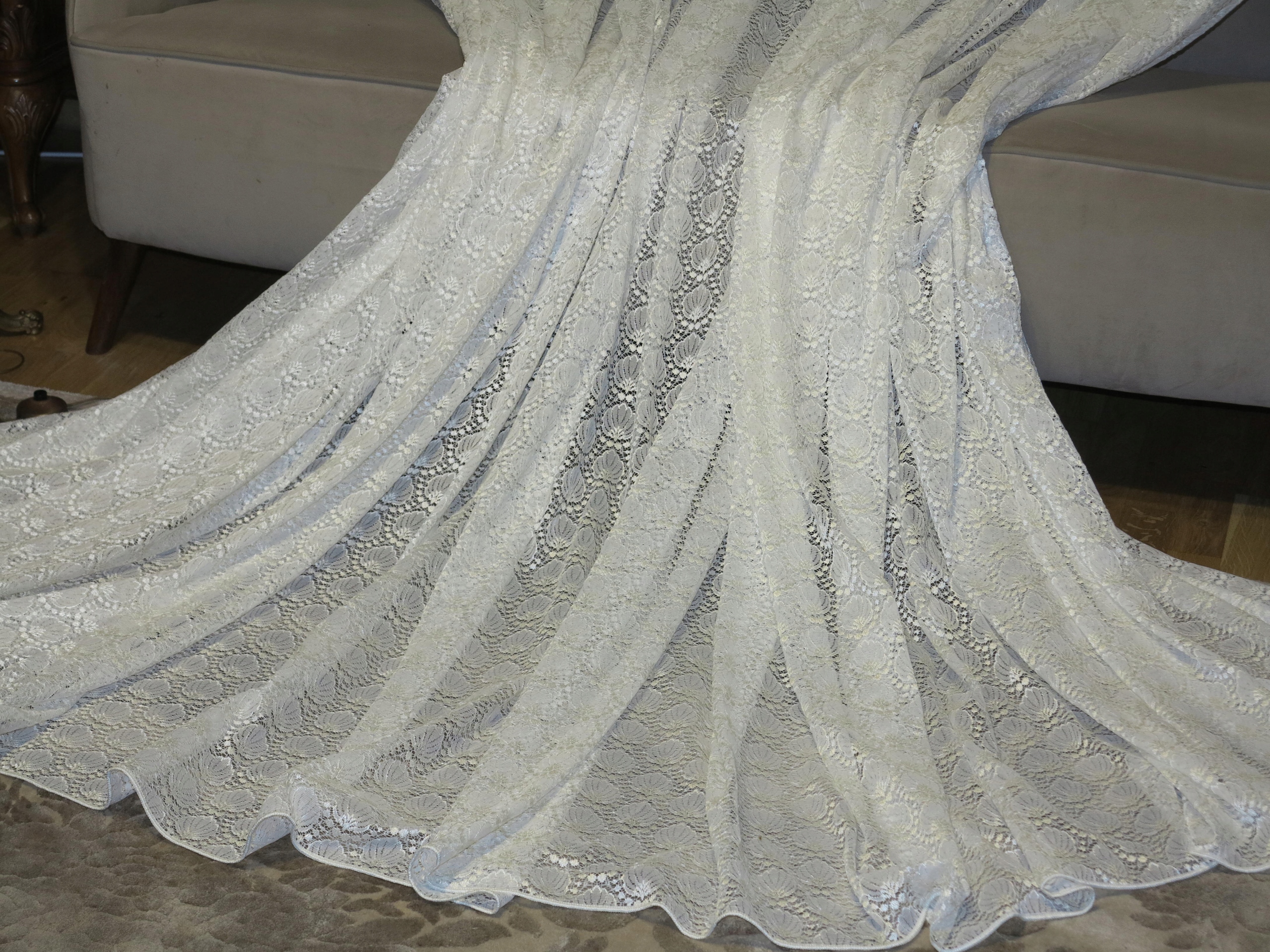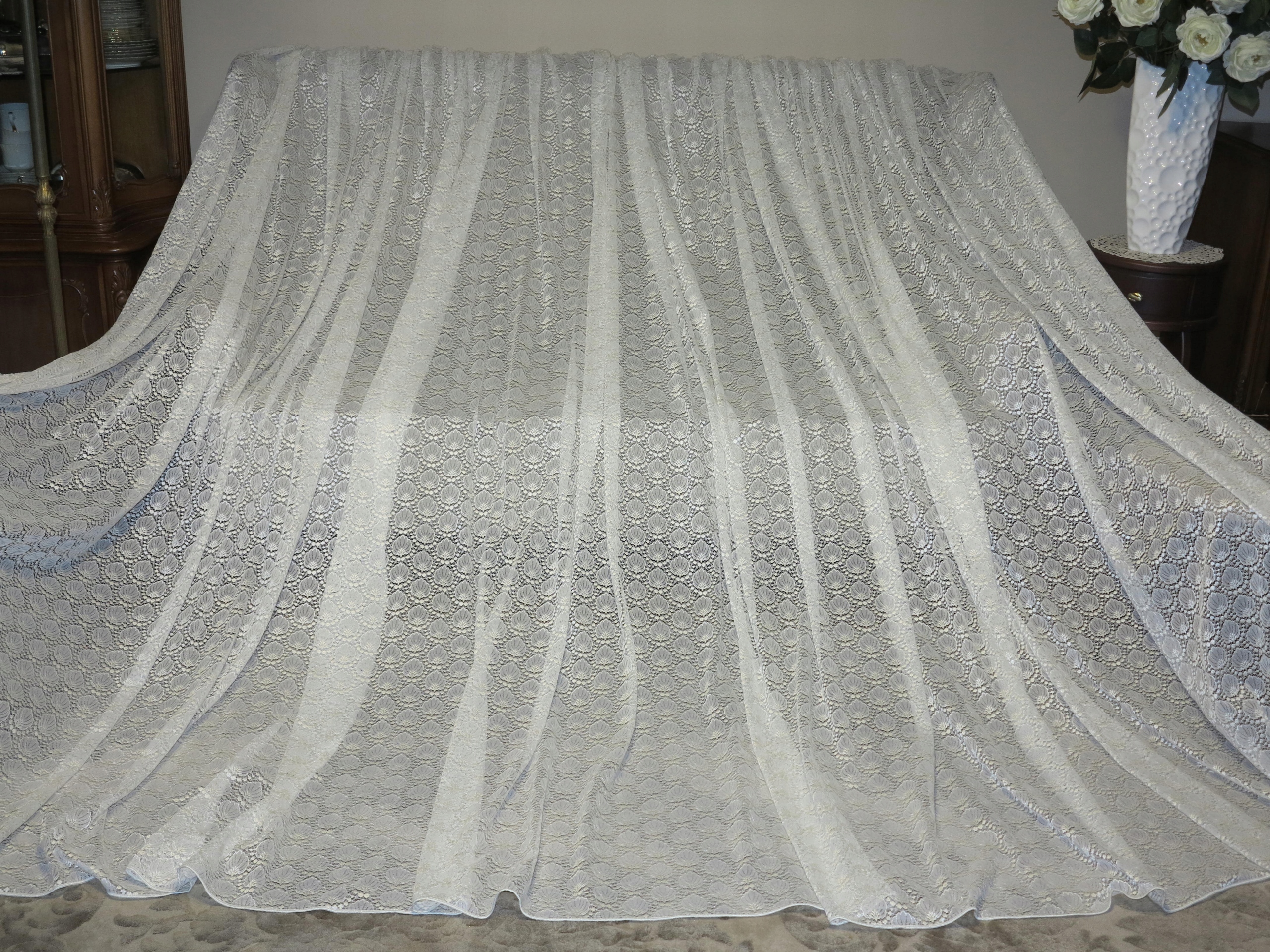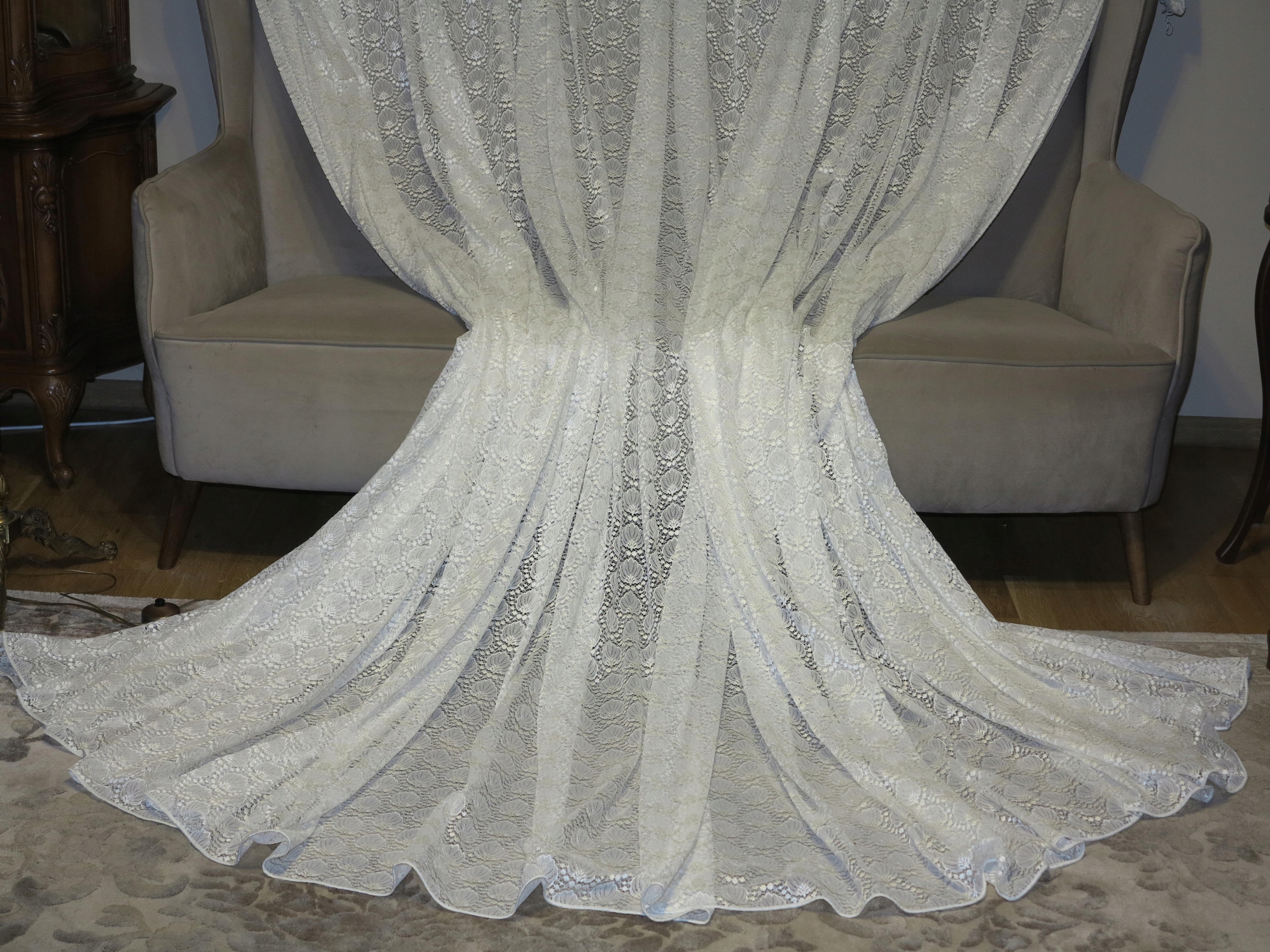 Красивое высокое и широкое занавес, полностью из высококачественного английского кружева. Более толстое кружево, но мягкое, «немного тяжелое», что делает его красивым. Дно завершено в целом с компрометирующим роликом. Ecru