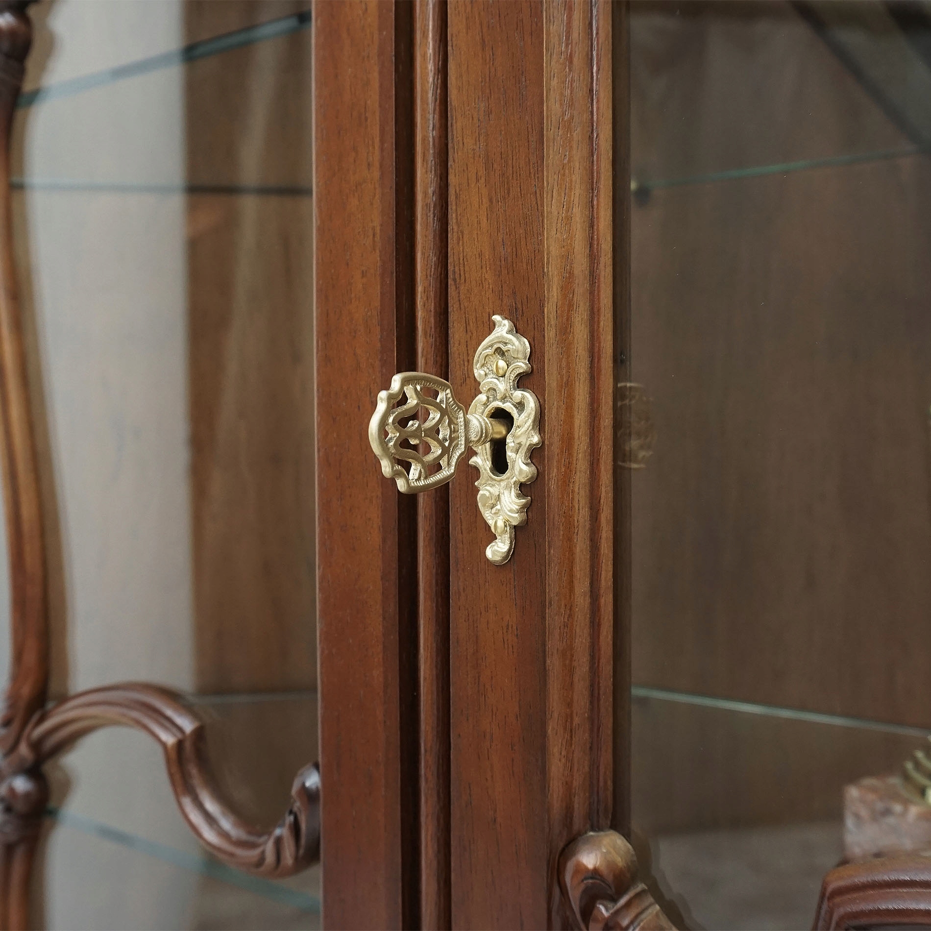 Выполненная из высококачественной древесины ореха, она отличается тщательным декором и утонченностью. детали, отражающие суть стиля Людвика. Верхняя часть витрины стеклянная, что позволяет демонстрировать книги, фарфор или украшения. Нижняя часть оборудована запирающимися шкафчиками, обеспечивающими дополнительное место для хранения вещей. Прочная конструкция, изящно профилированные ножки и элегантная отделка из темного дерева позволяют этой витрине идеально вписаться как в классический, так и в эклектичный интерьер. Это идеальный выбор для любителей винтажного стиля и антиквариата, которые хотят добавить в свой дом элемент истории и элегантности.