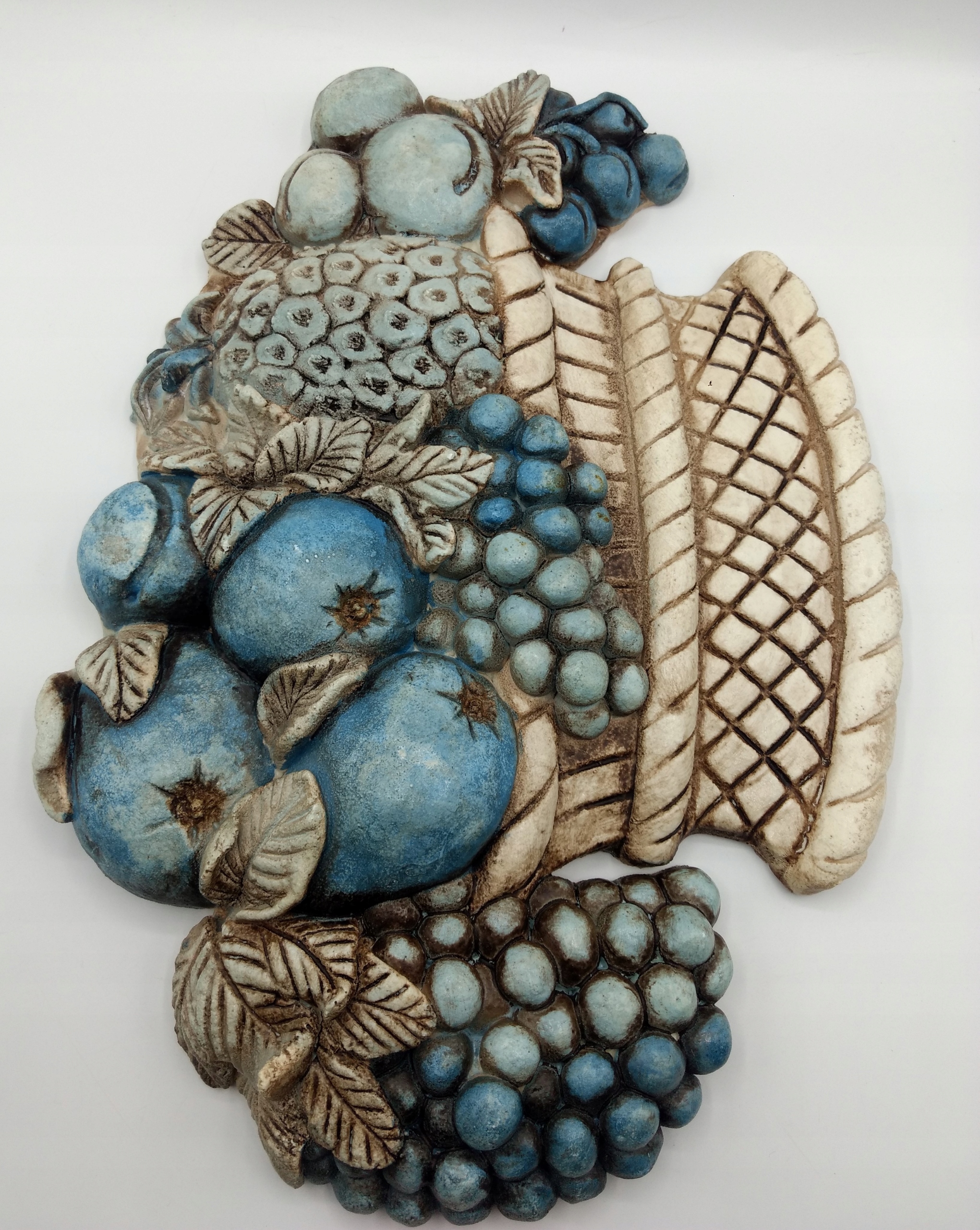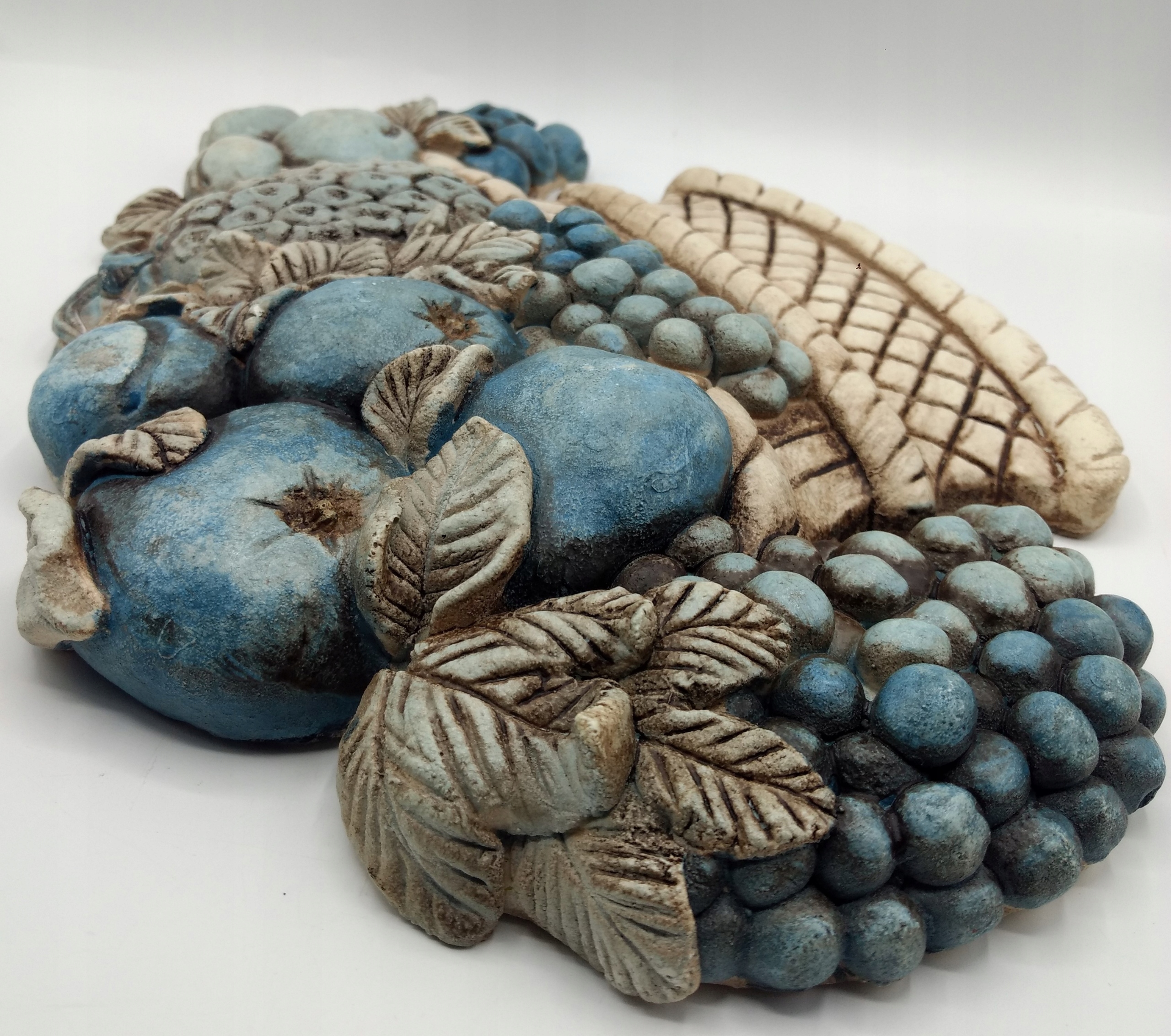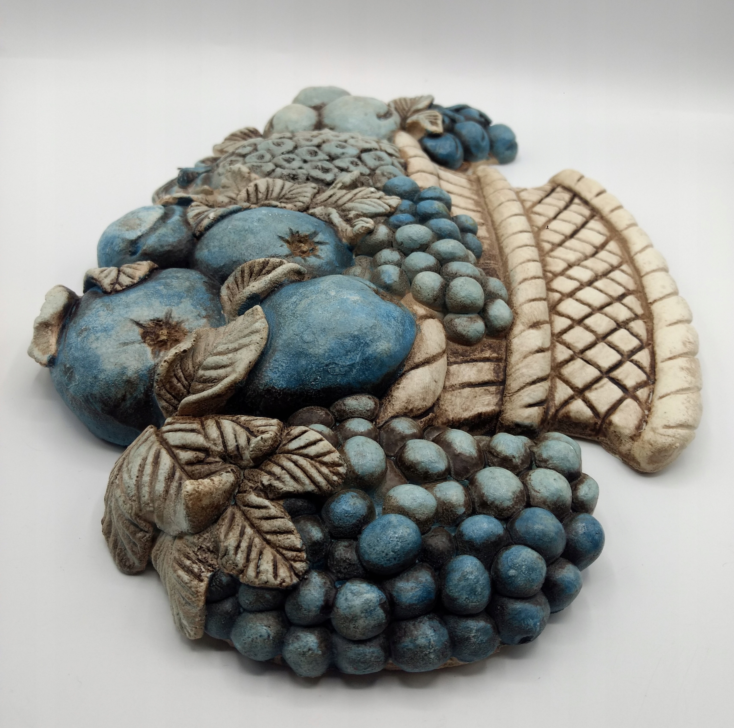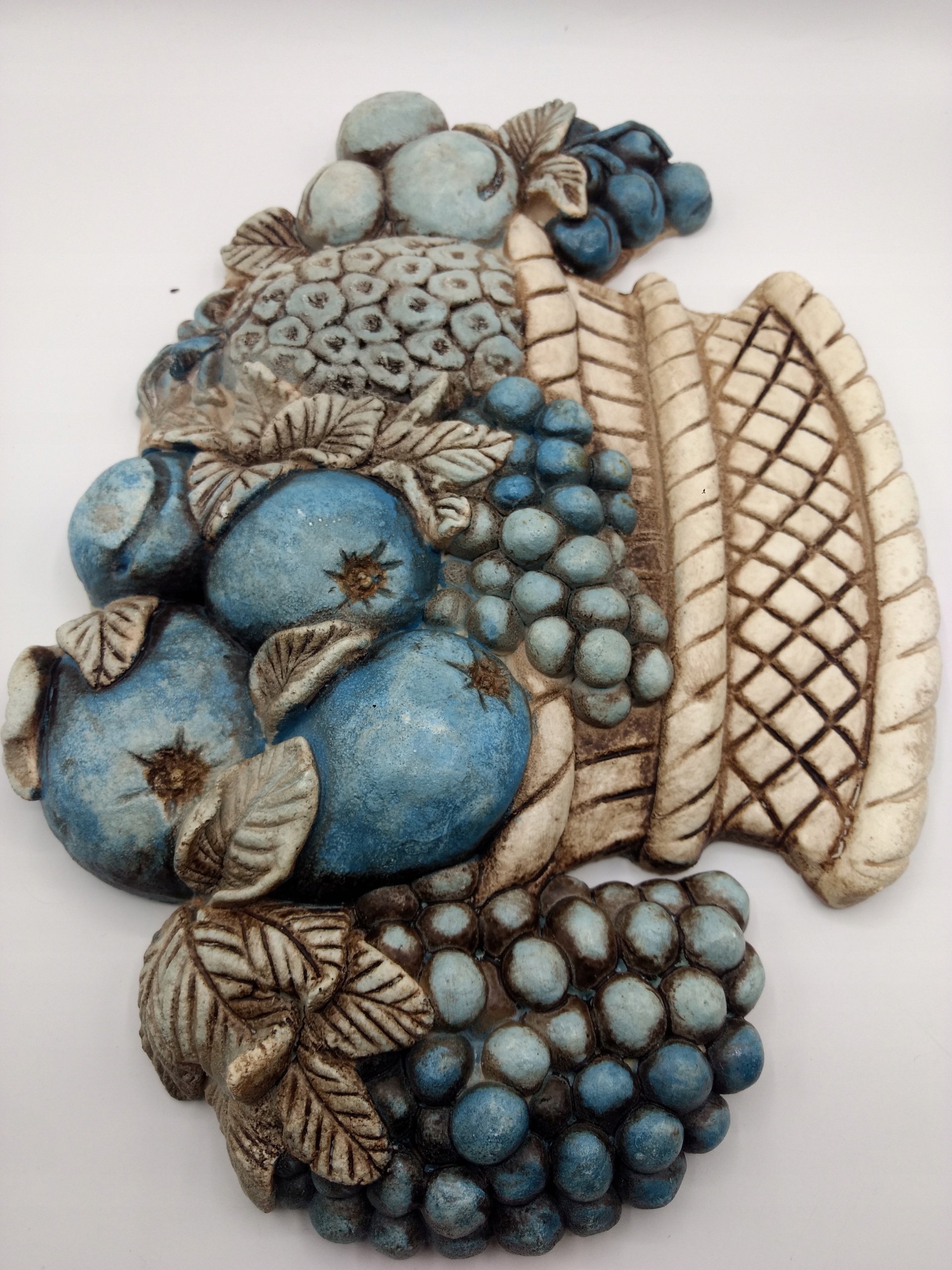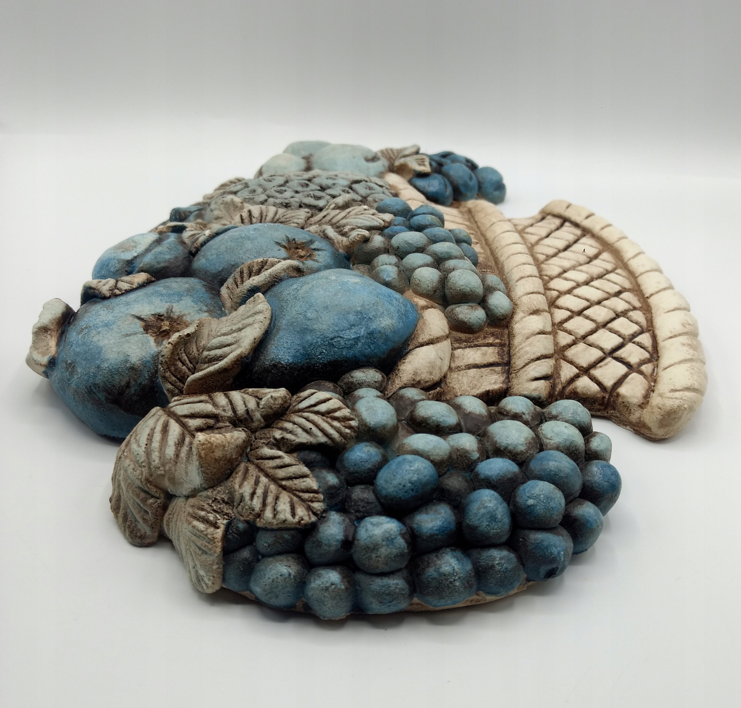 Красивая синяя тарелка - большая корзина с фруктами - массивная, большая - 36см.