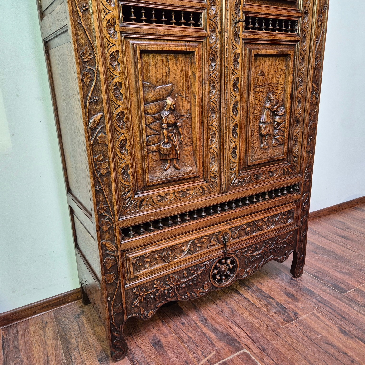 Красивый бретонский гардероб. Изготовлен из массива каштана. Замки в рабочем состоянии, один ключ в комплекте.