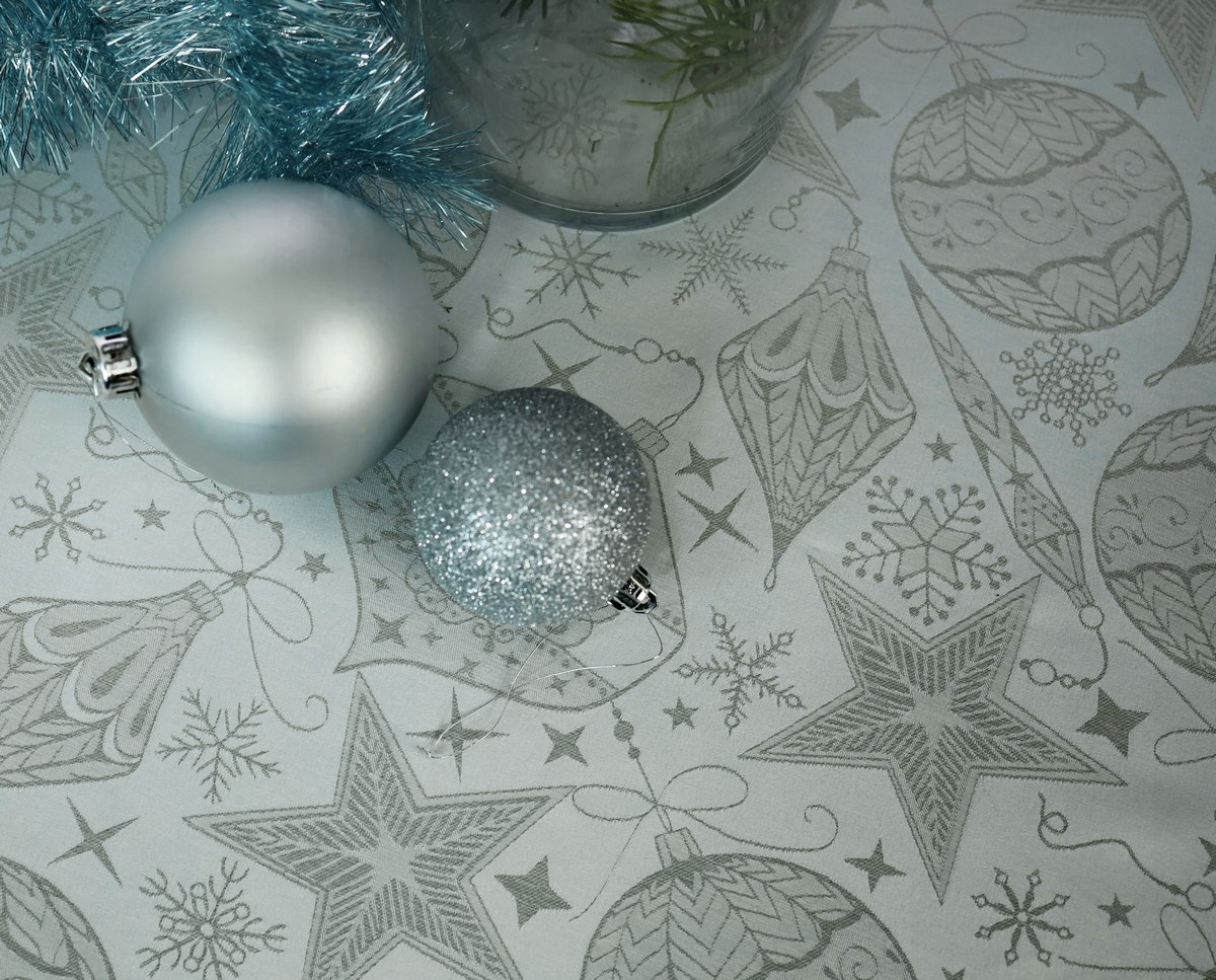 Эксклюзивный, в теплых оттенках серого, элегантной жаккардовой рождественской скатерть.