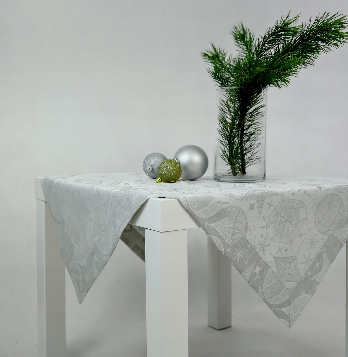Стенка имеет два оттенка серого. С одной стороны, есть серый светящий с различными безделушками, а с другой - противоположность: скатерть - более матовая и Серебряные безделушки . Это позволяет вам использовать скатерти с обеих сторон, что означает, что она останется свежей дольше.