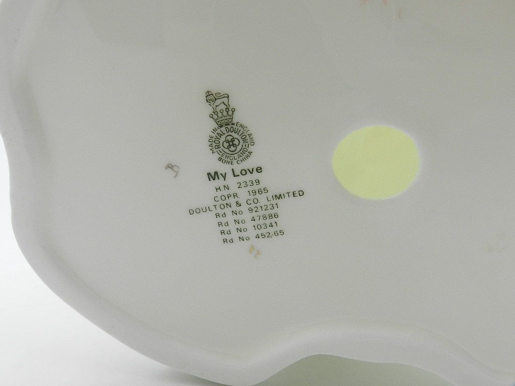 Royal Doulton Сделано в Англии Марка костяного фарфора, использовавшаяся в 1965 году + название модели My Love с производственными номерами.