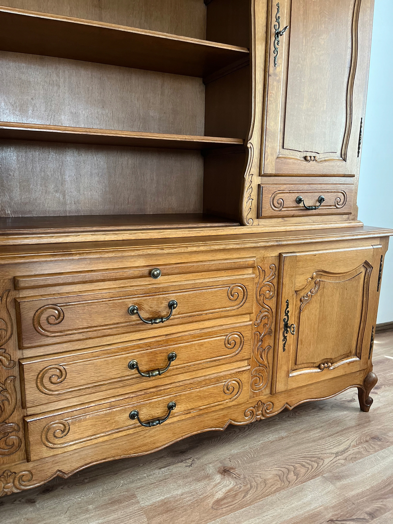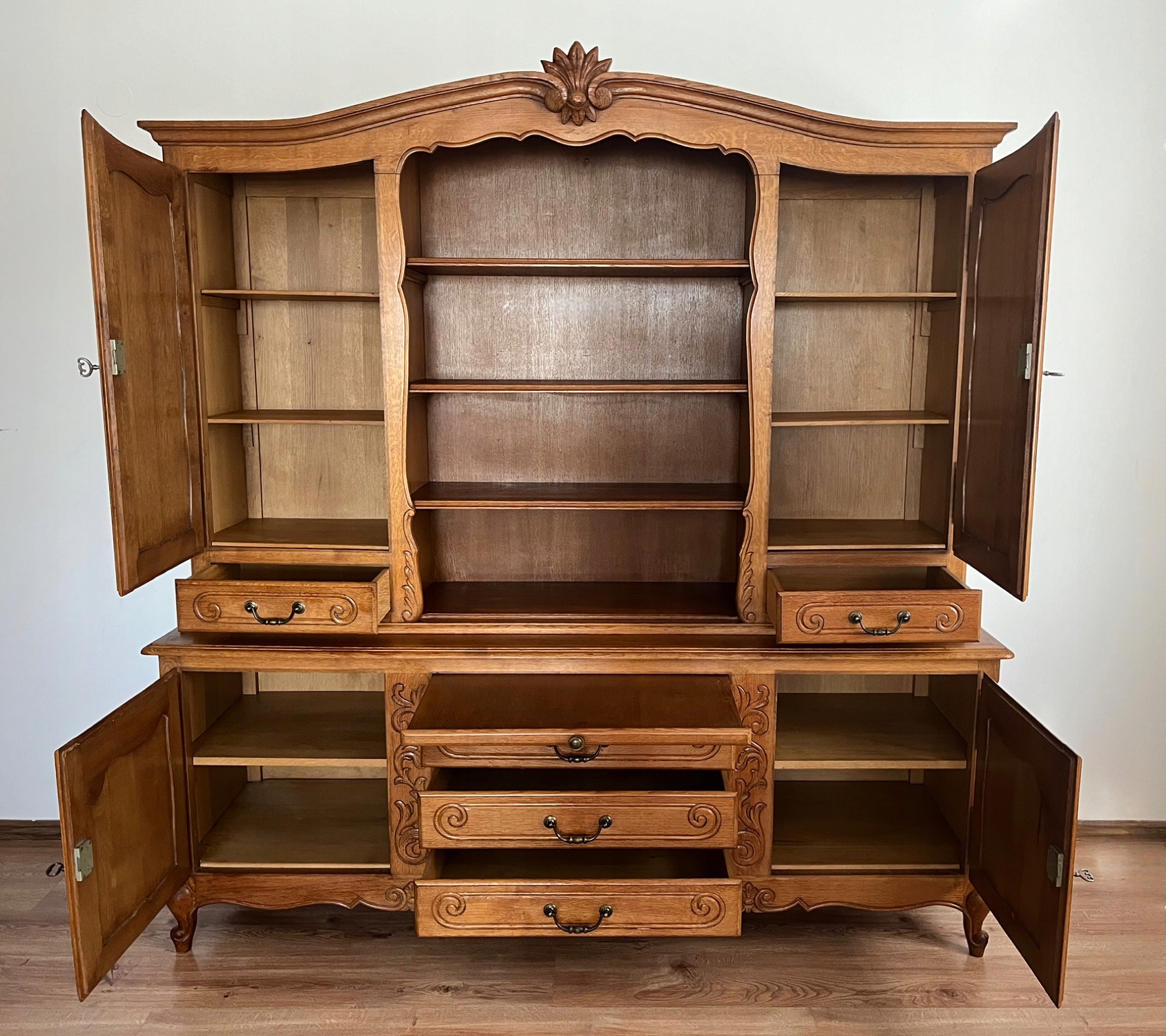 Серван был отремонтирован в нашей мастерской, мебель полностью заново покрыта лаком, а внутренние поверхности очищены от старые покрытия и лак. . Никаких неприятных запахов. Буфет состоит из 2 частей. Мебель прочная и конструктивно устойчивая, в комплекте, все замки работают.