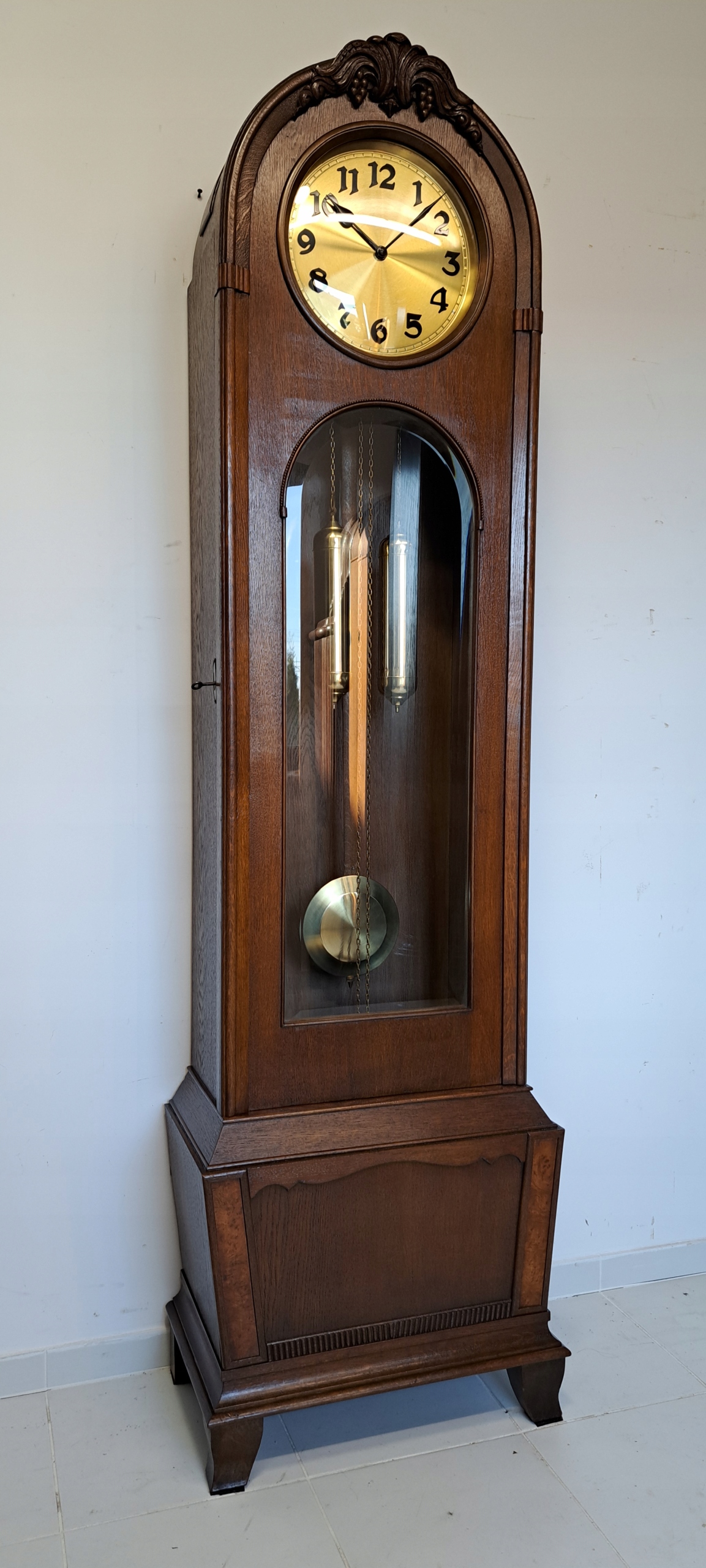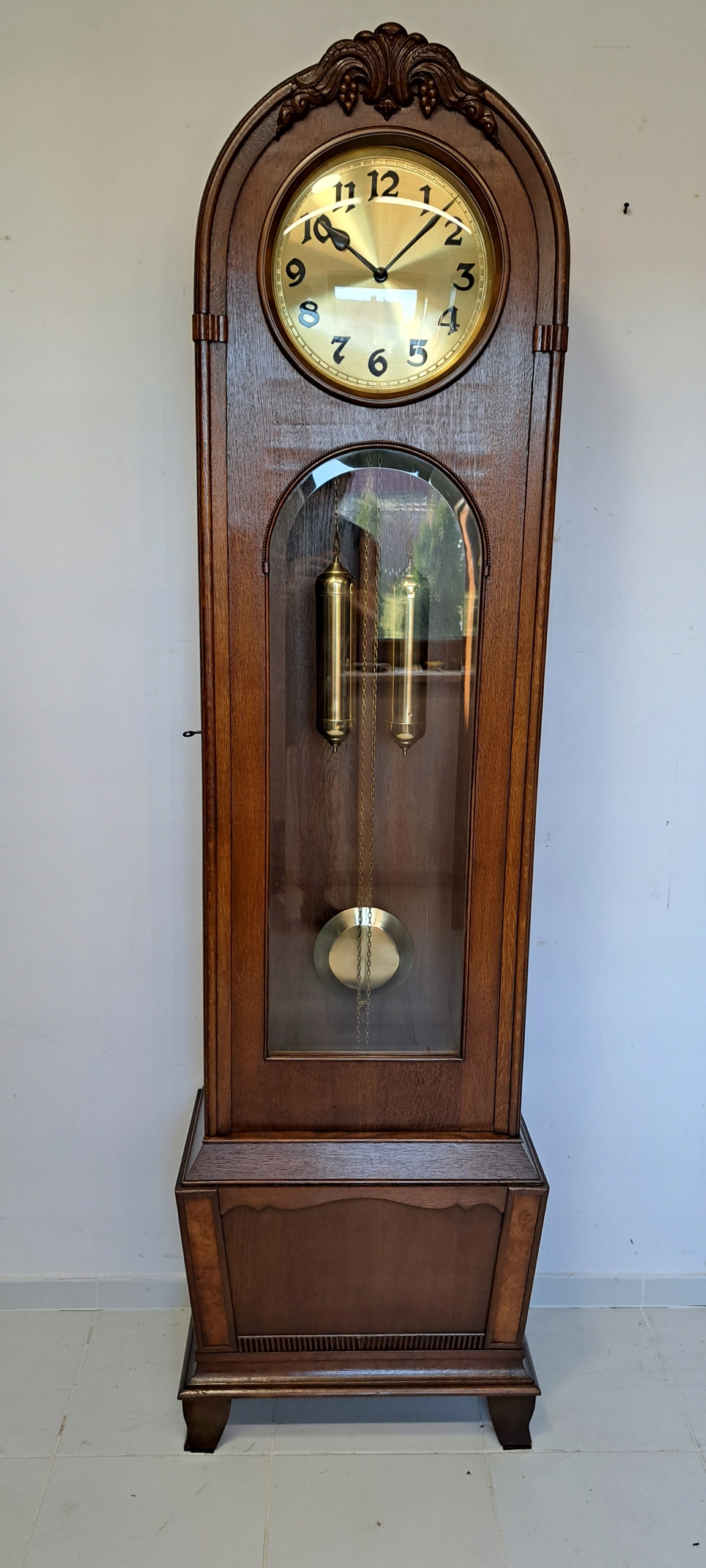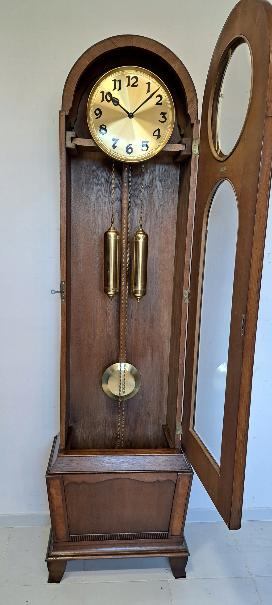 Здоровая коробка передач, в отличном состоянии, механизм в отличном состоянии после обзора наблюдения. Щит 29 см очень хорошо сохранился, вес и маятник в очень хорошем состоянии.