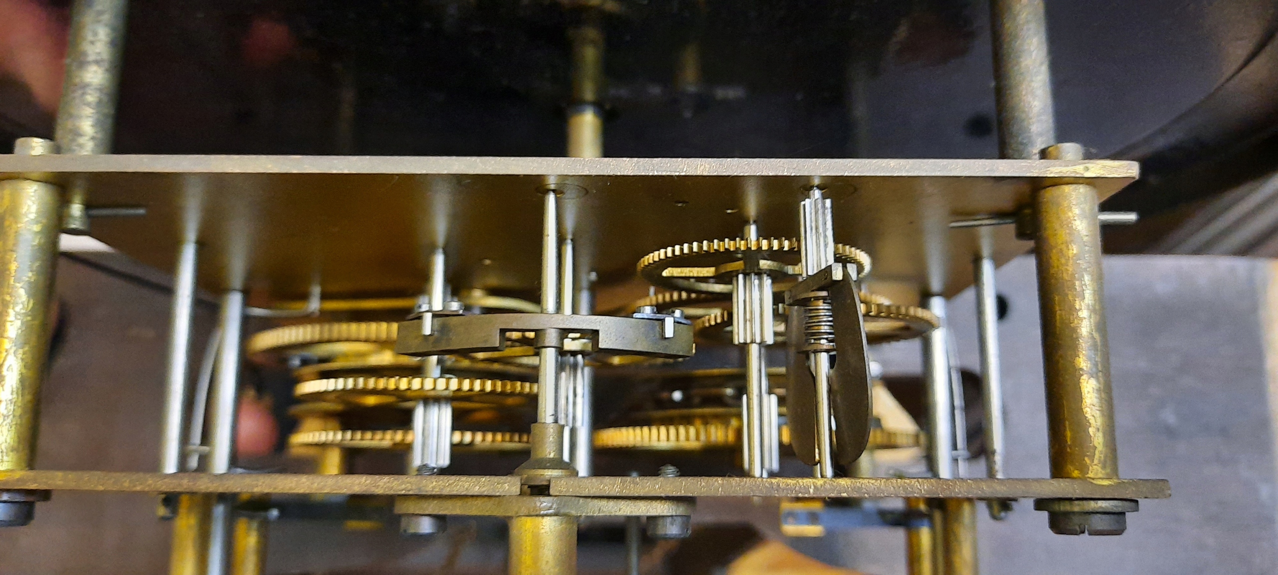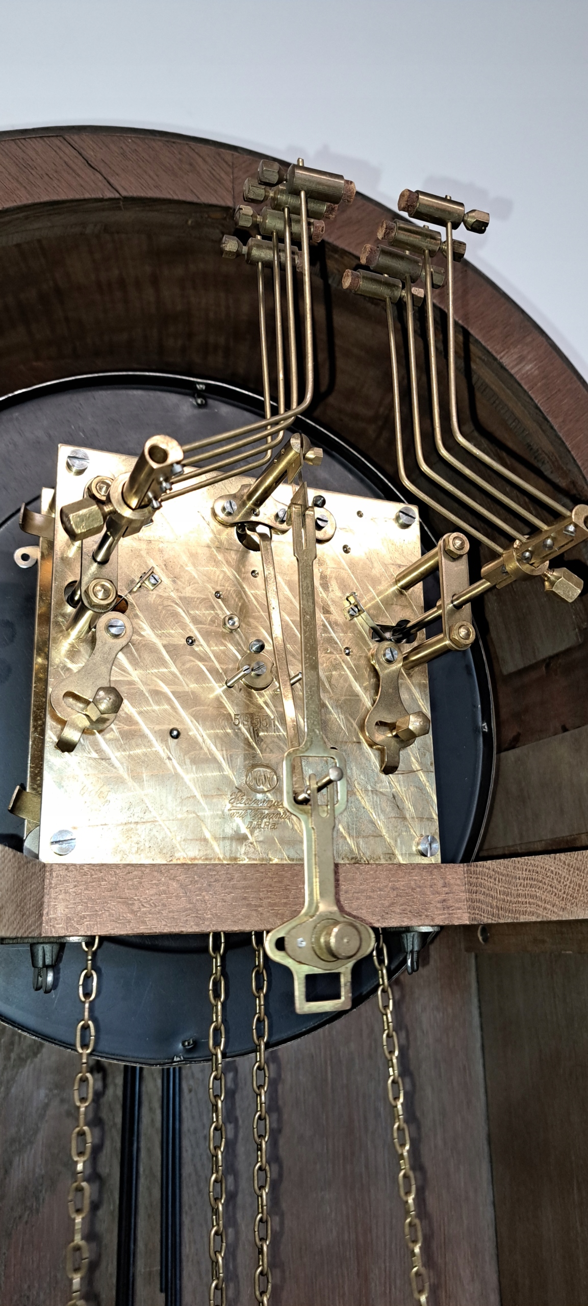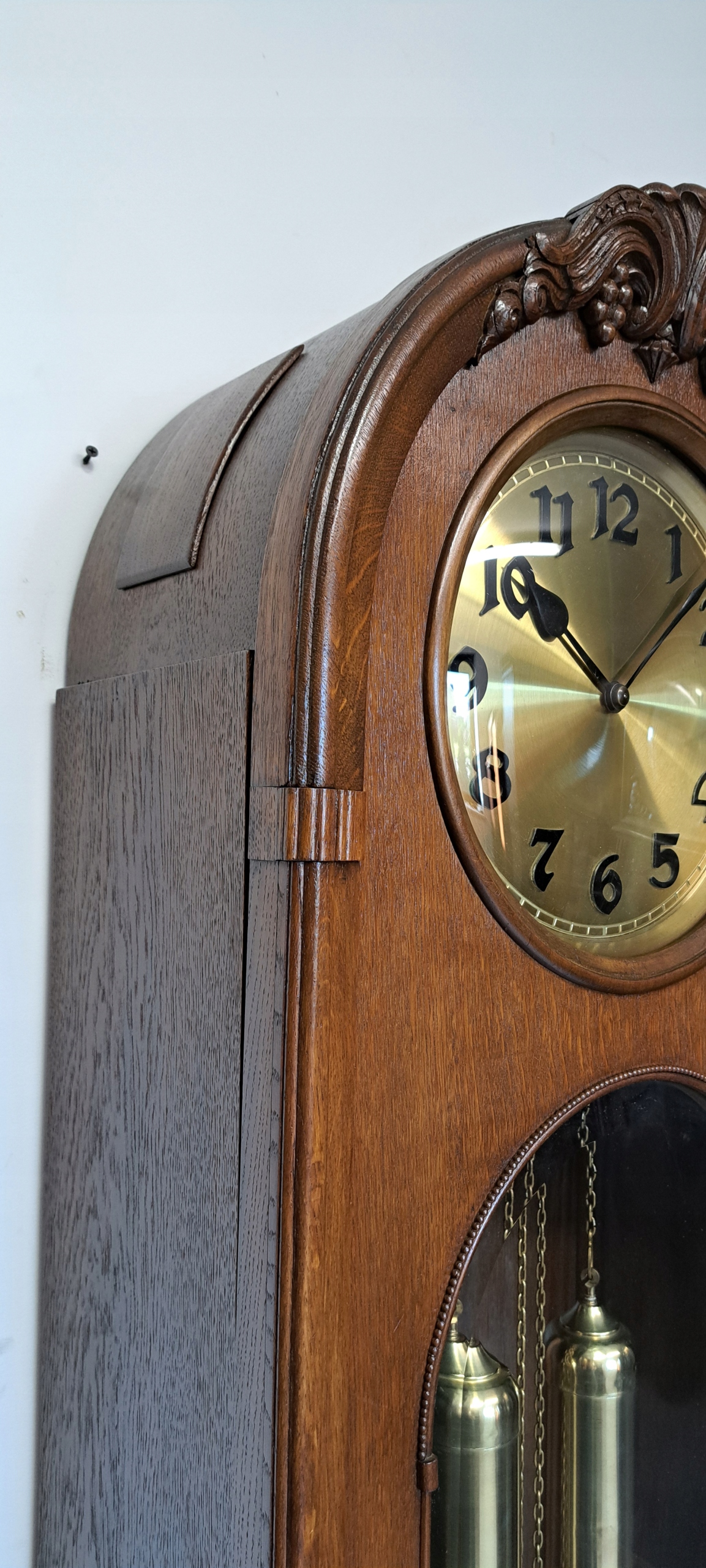 Здоровая коробка передач, в отличном состоянии, механизм в отличном состоянии после обзора наблюдения. Щит 29 см очень хорошо сохранился, вес и маятник в очень хорошем состоянии.
