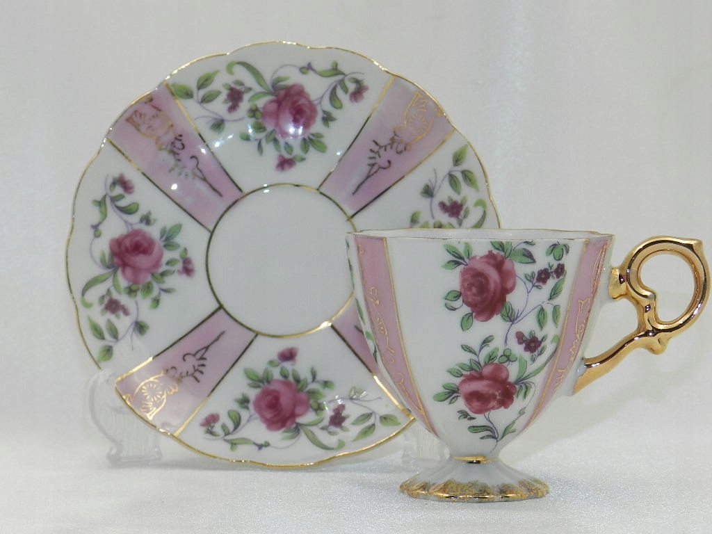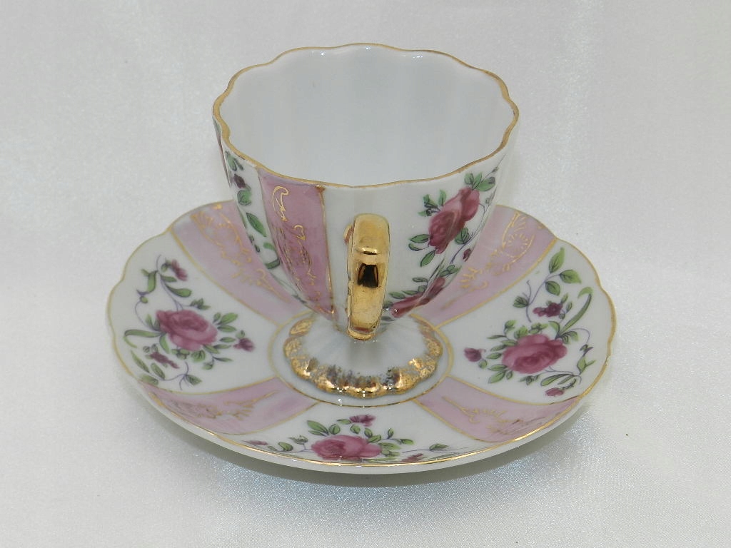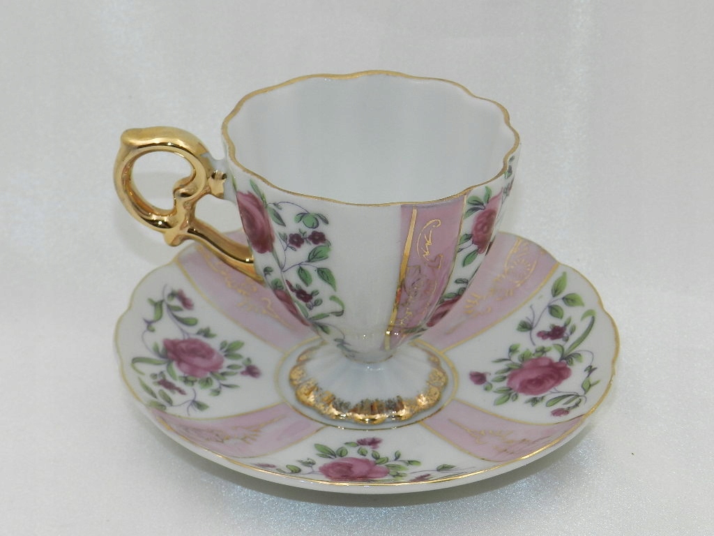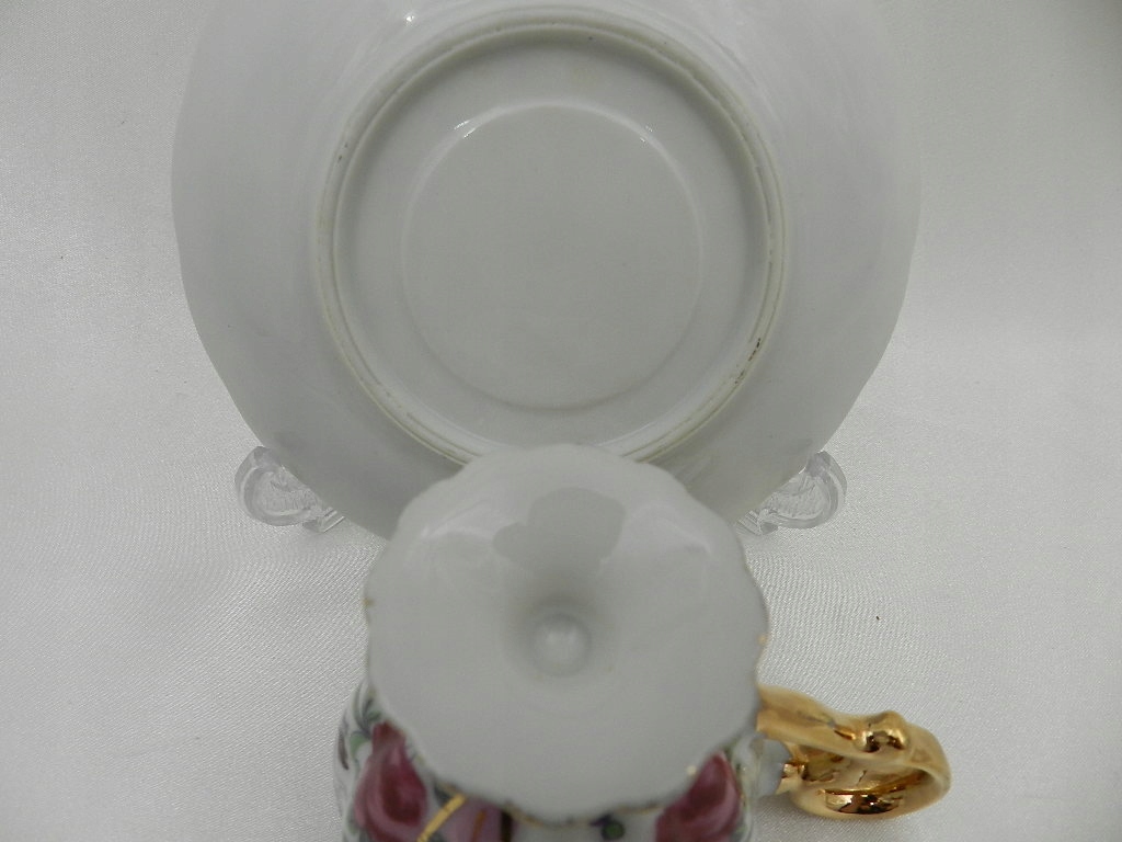 Ажурные рельефы, красивая ножка, на которой поставлена чашка, изящная двухчастная ручка и тонкая позолота придают всему целому возвышенное визуальное впечатление.