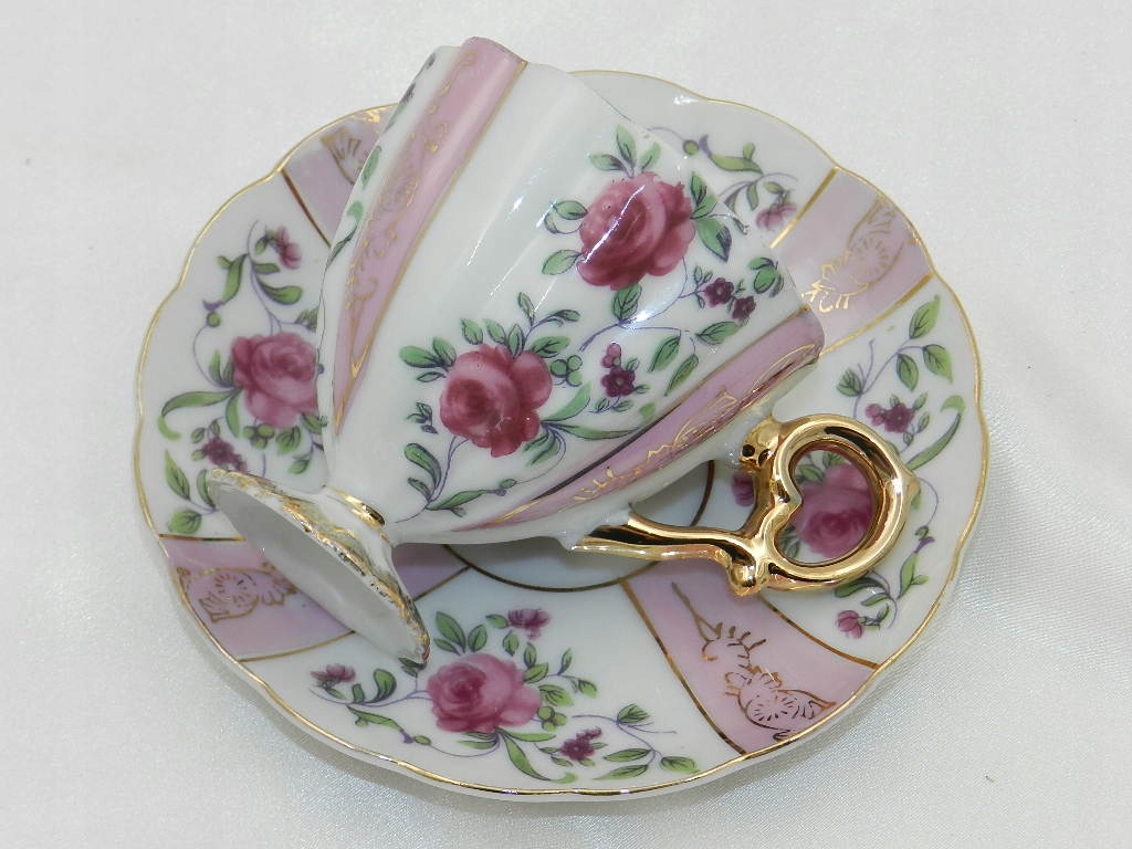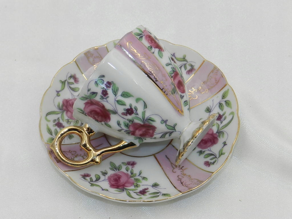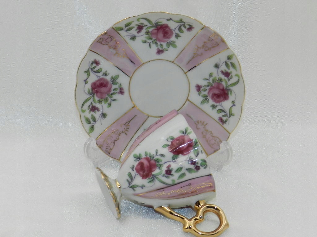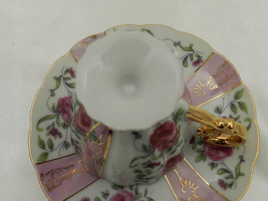 Ажурные рельефы, красивая ножка, на которой поставлена чашка, изящная двухчастная ручка и тонкая позолота придают всему целому возвышенное визуальное впечатление.
