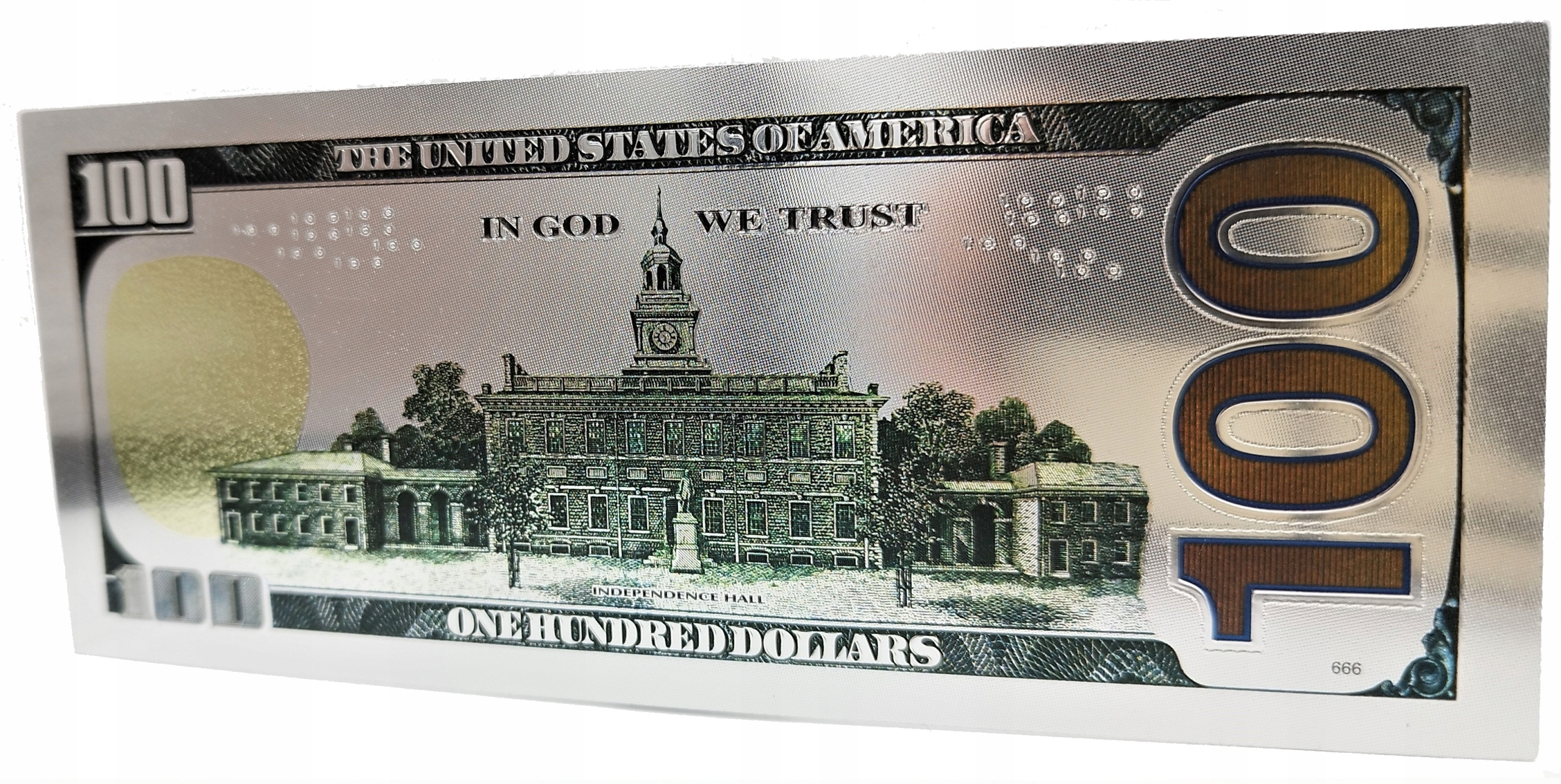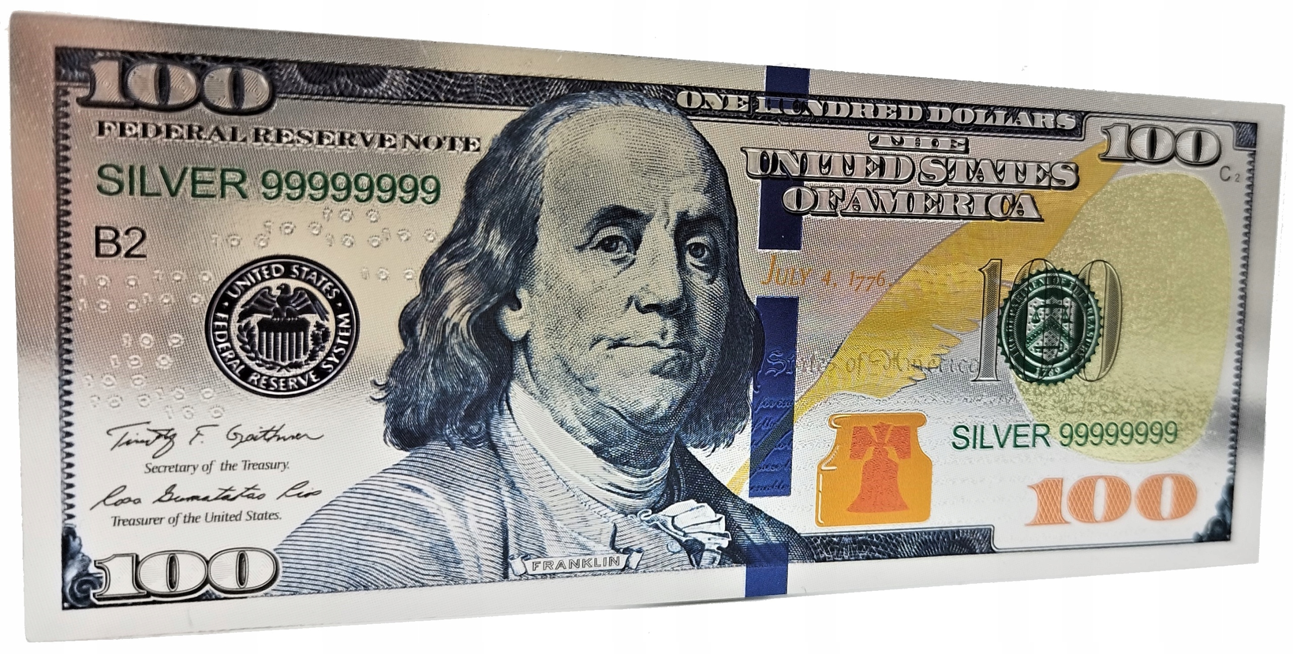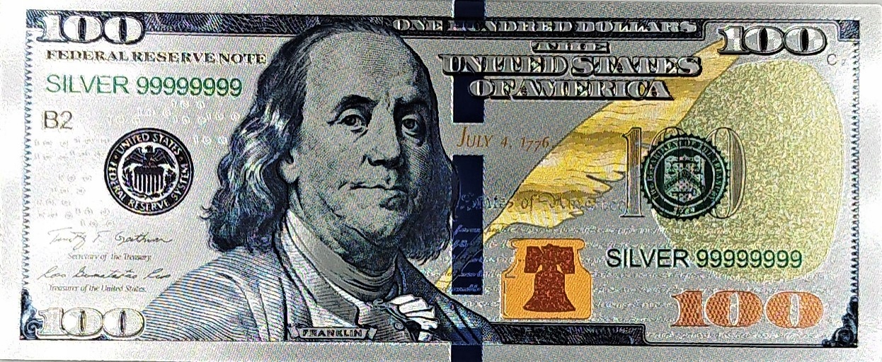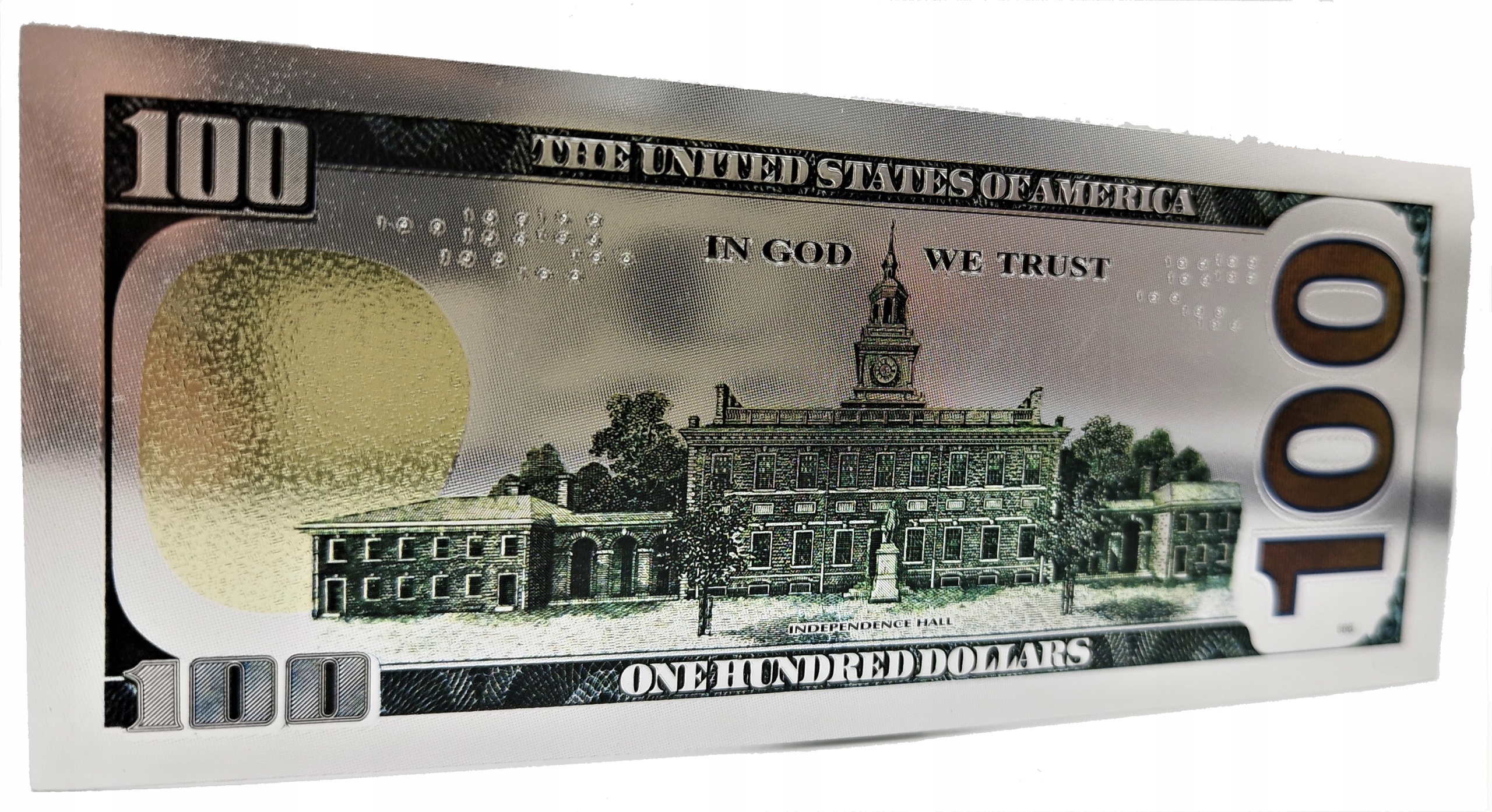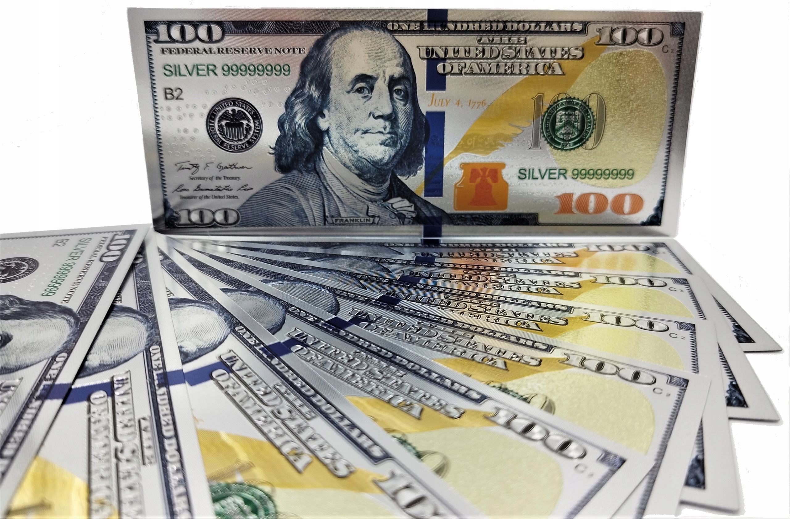КОЛЛЕКЦИОННАЯ БАНКНОТА 100 ДОЛЛАРОВ США, СЕРЕБРЯНАЯ ВЕРСИЯ
