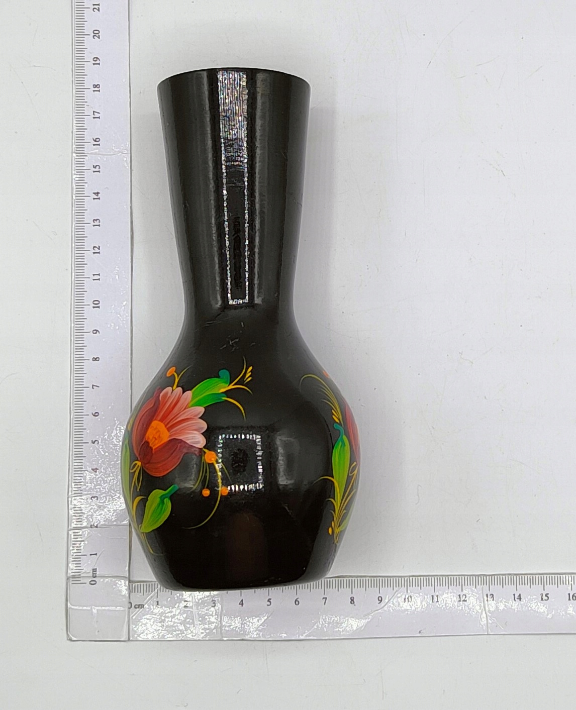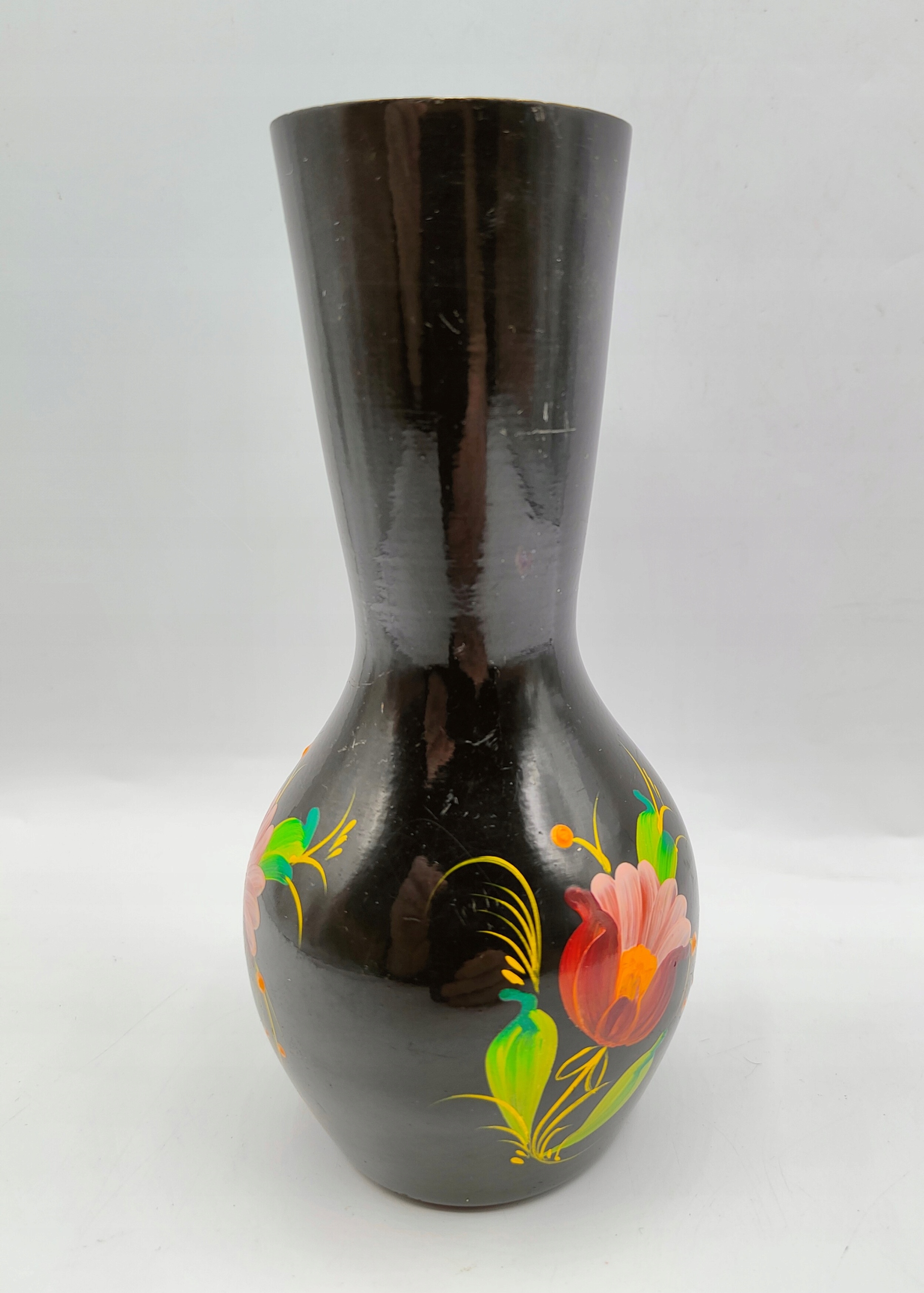 красивая металлическая ваза с цветами, расписанными вручную