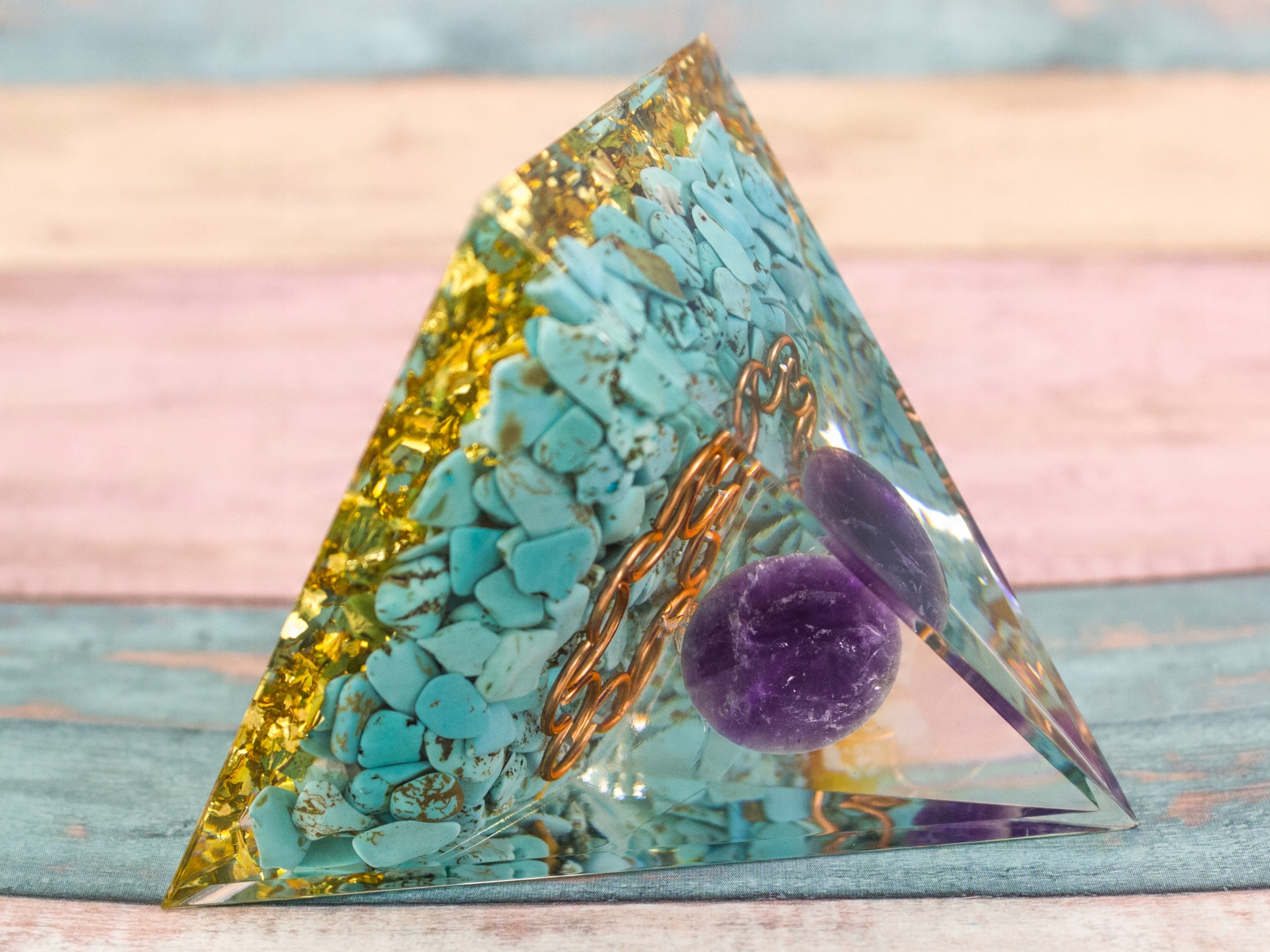 СМОЛА ПИРАМИДА ОРГОНИТ БИРЮЗА АМЕТИСТ ЧАКРА ОЧИЩАЮЩАЯ БИОЭНЕРГИЯ 6см