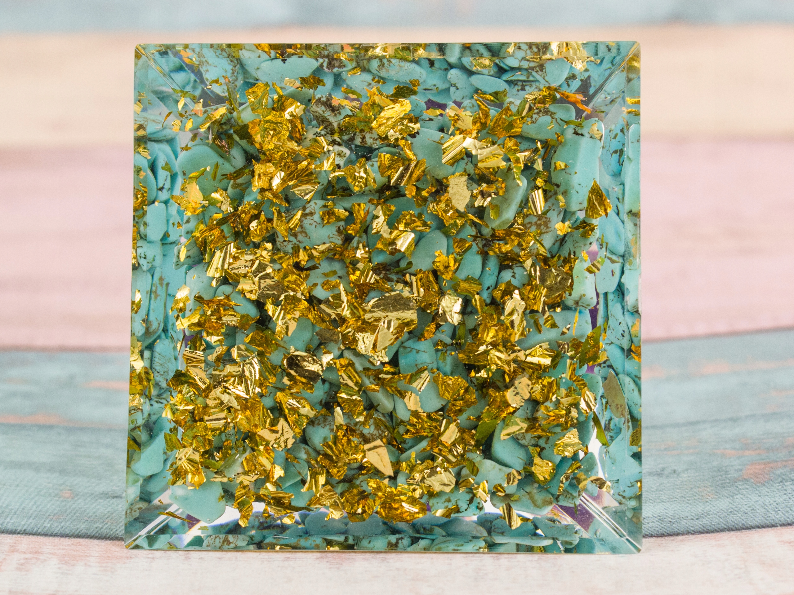 Пирамида Оргонит, энергетическое воздействие которой, усиленное медной и золотой фольгой, приносит, помимо прочего, гармонию, расслабление. и умиротворение мыслей и эмоций, а также очищает от плохой энергетики все помещение.