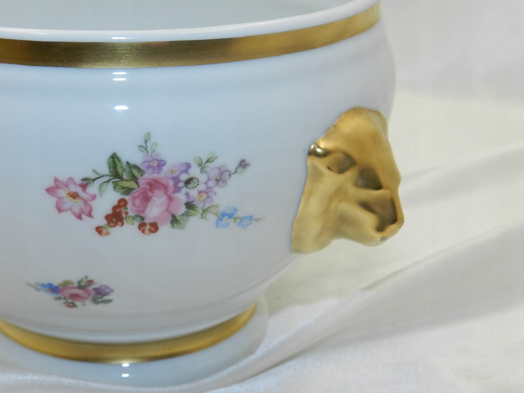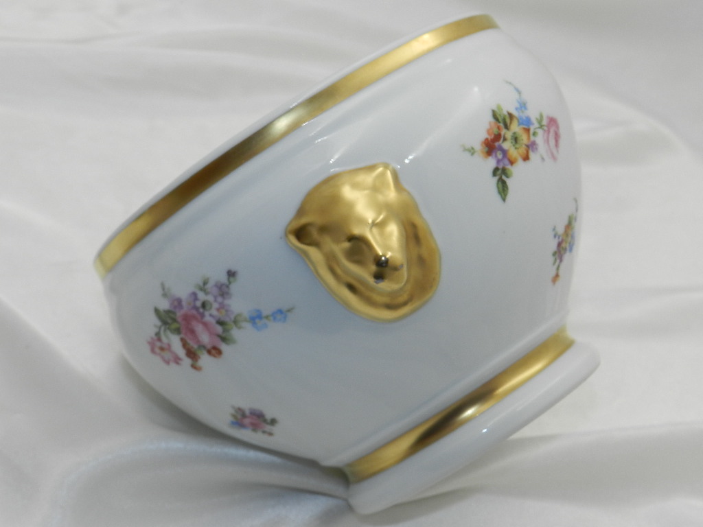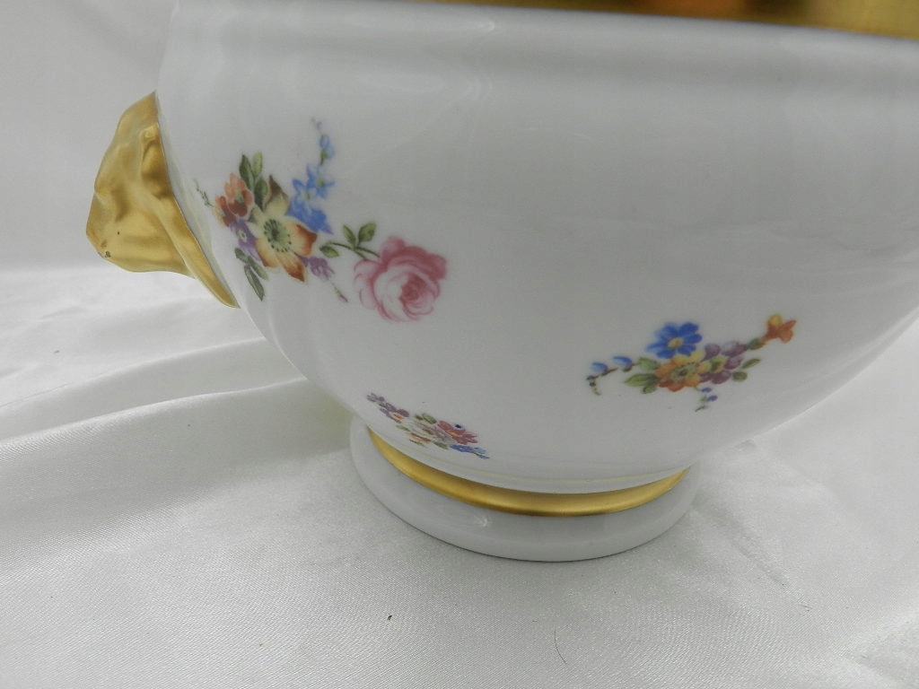 КРАСИВАЯ ФАРФОРОВАЯ КРЫШКА С РУЧКАМИ В ФОРМЕ ГОЛОВ ЛЬВА БЕЛЬГИЯ