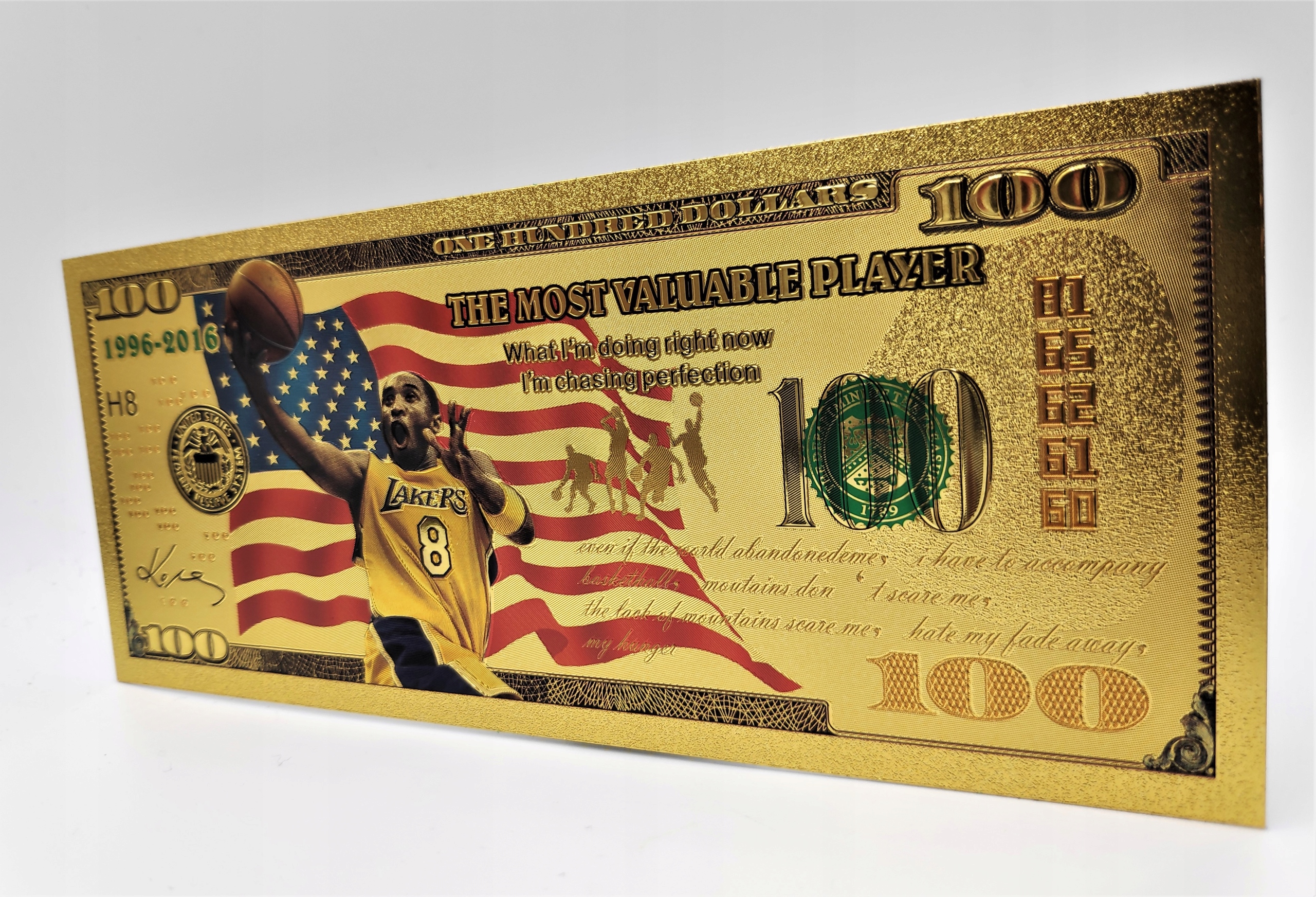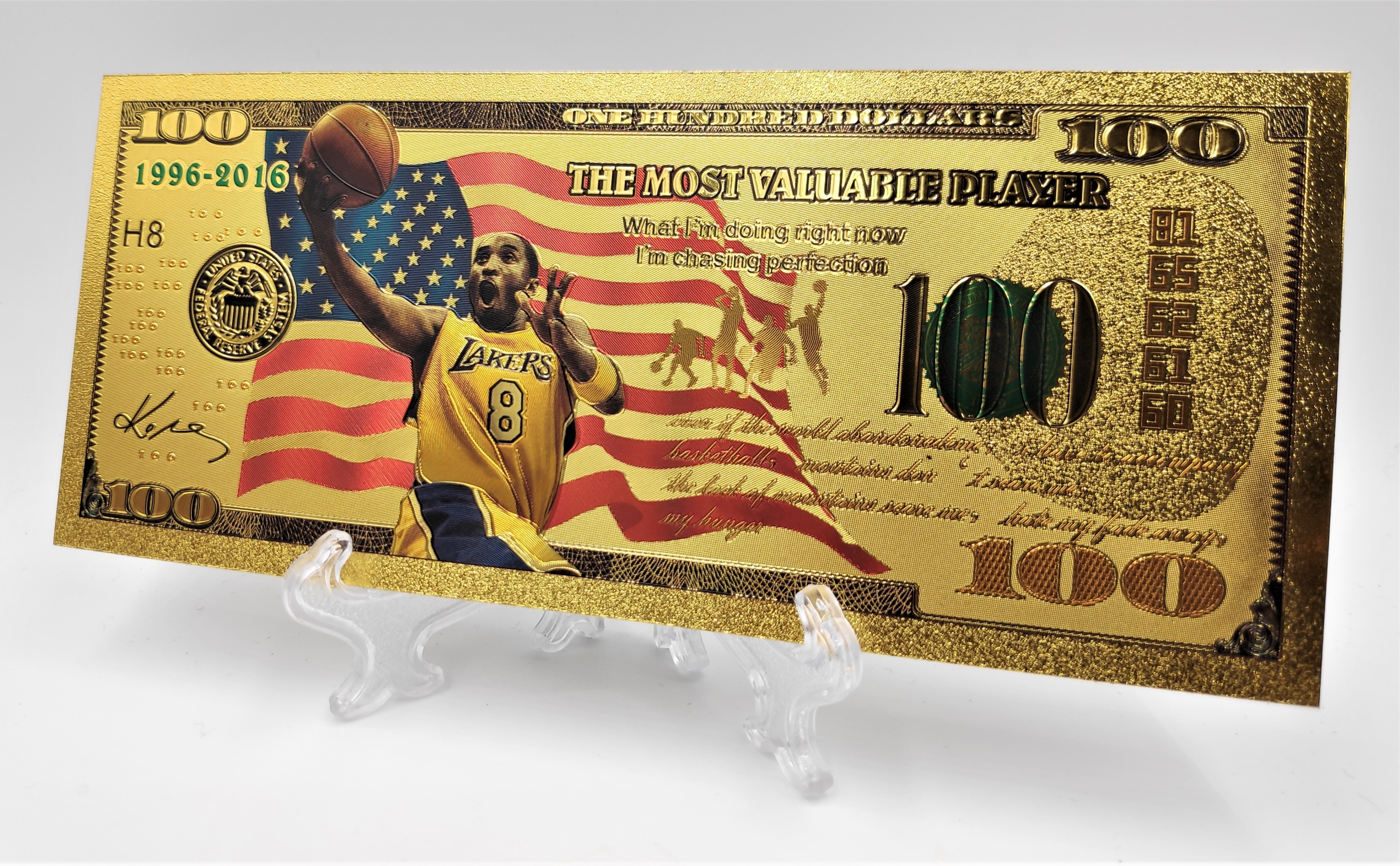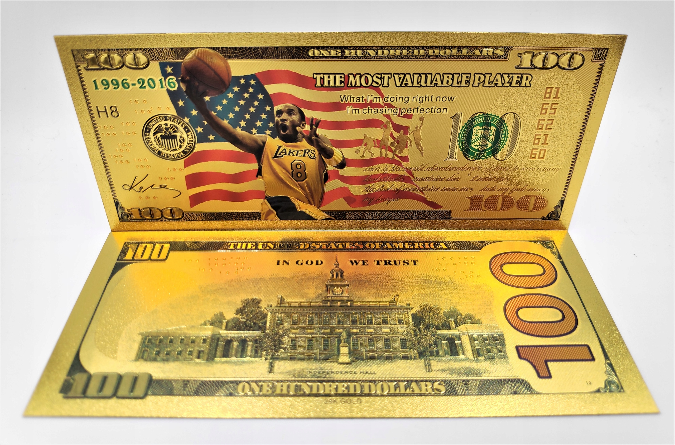 Красива позолочена 100-доларова банкнота Кобі Брайанта