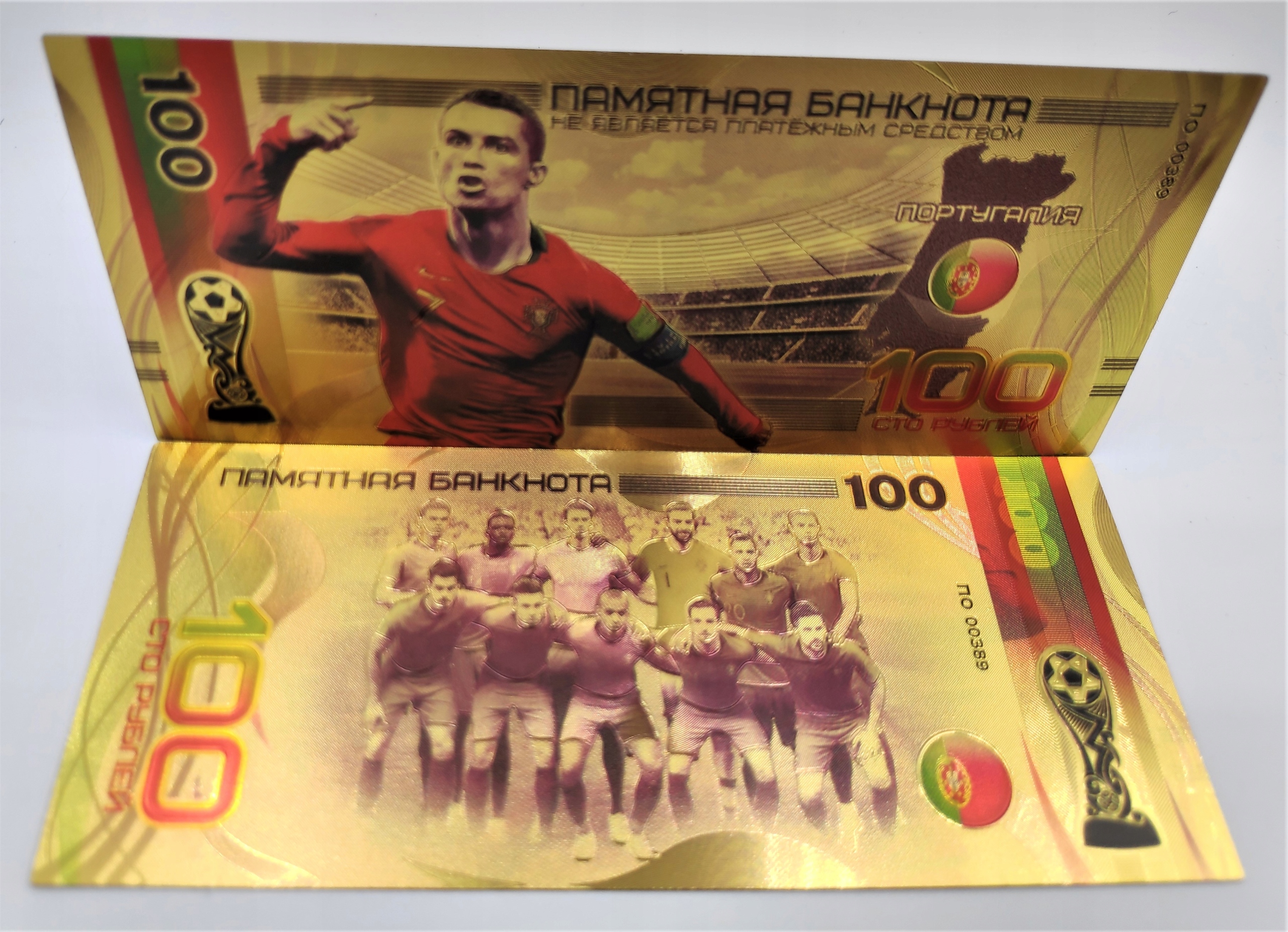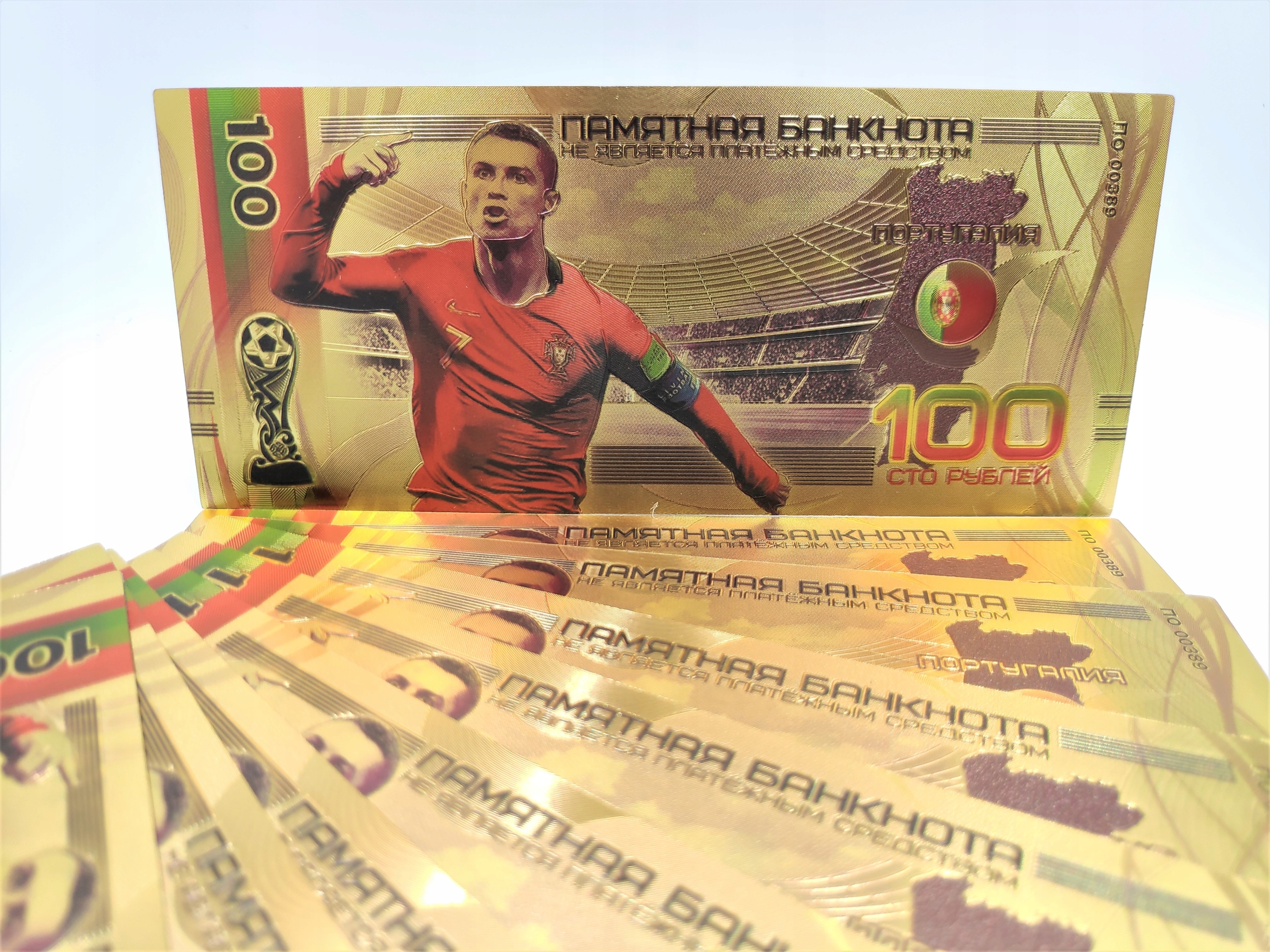 Продаю красивую позолоченную банкноту номиналом 100 рублей с изображением Криштиану Роналду.