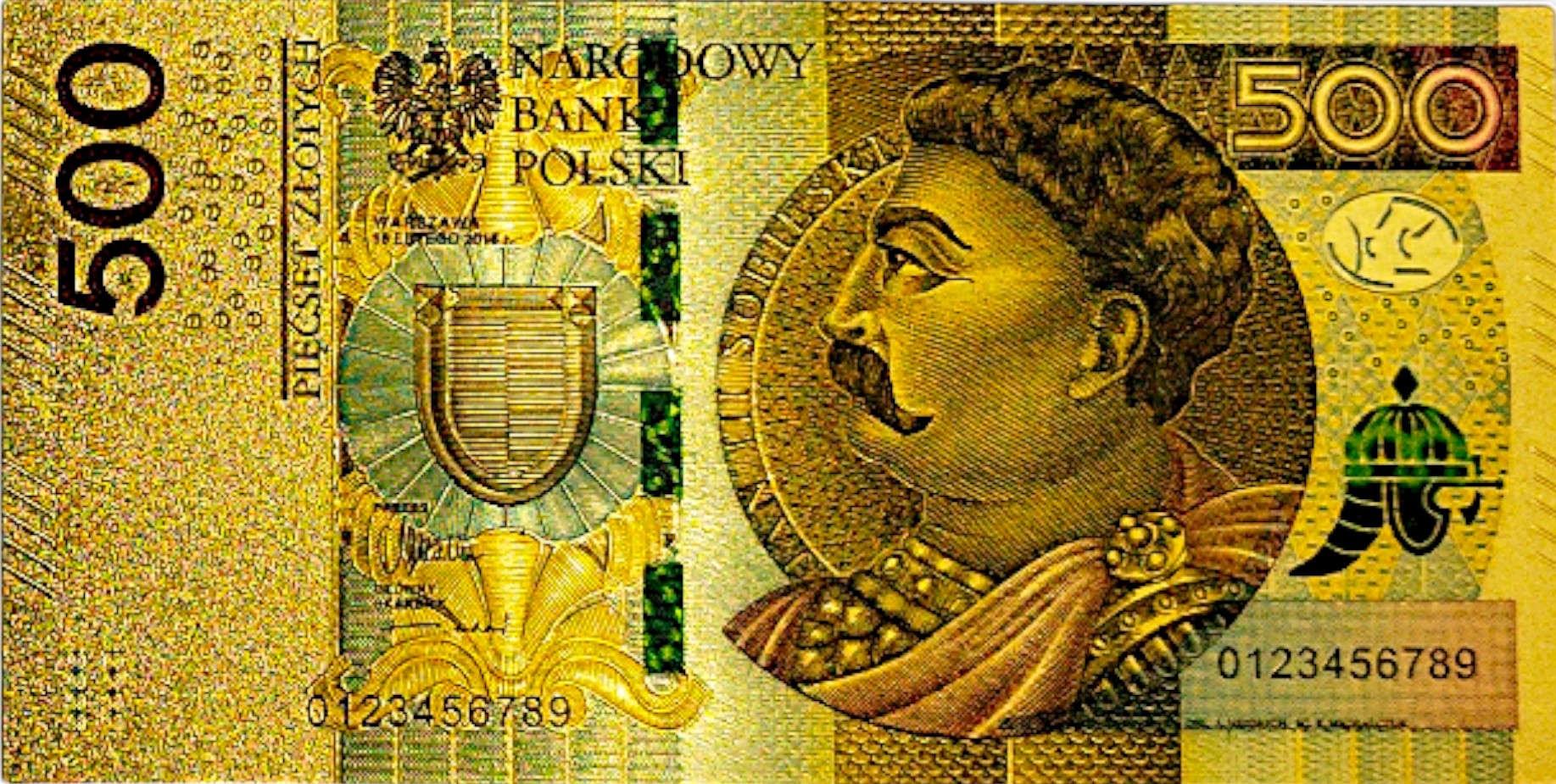 Красива позолочена колекційна банкнота 500 PLN Sobieski, УНІКАЛЬНИЙ ПОДАРУНОК