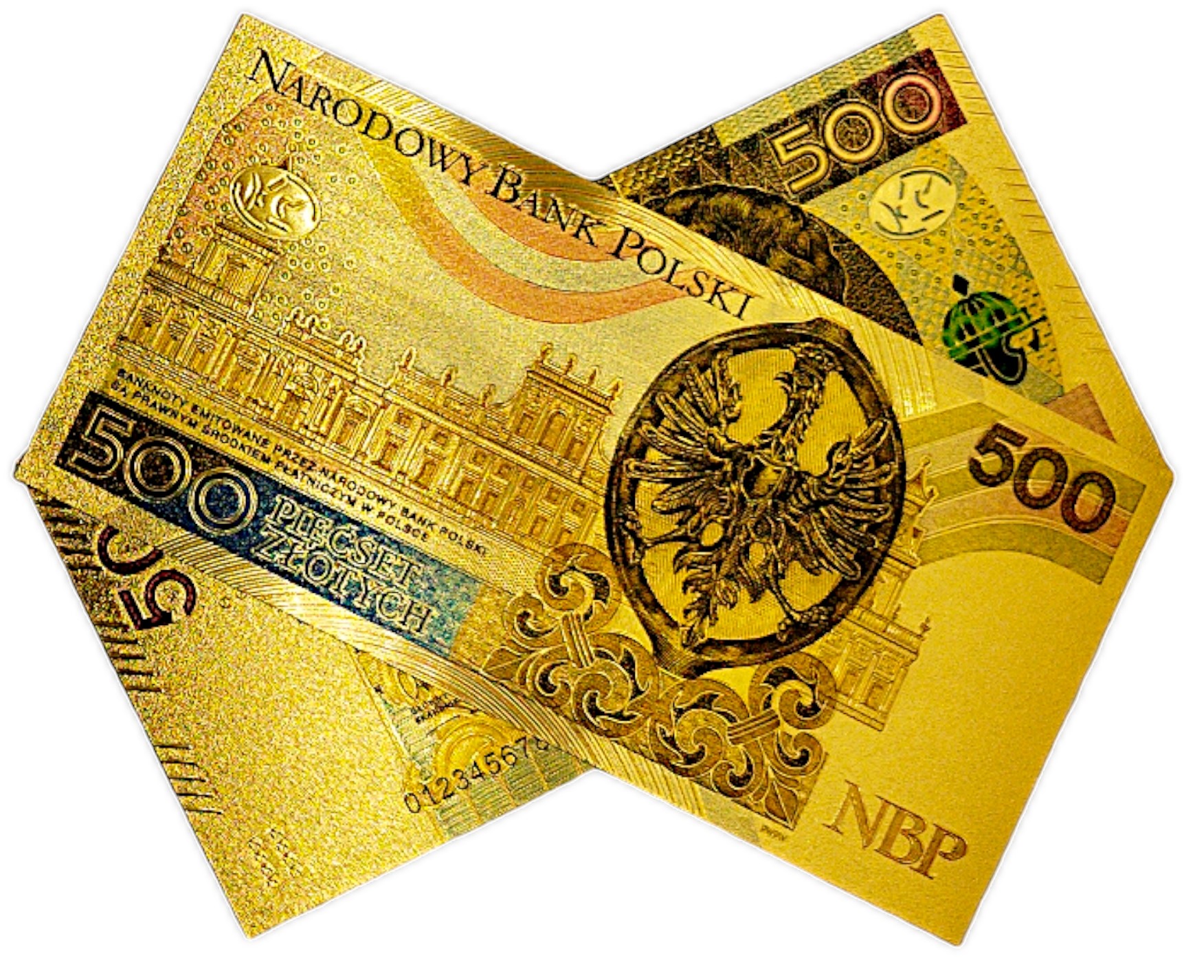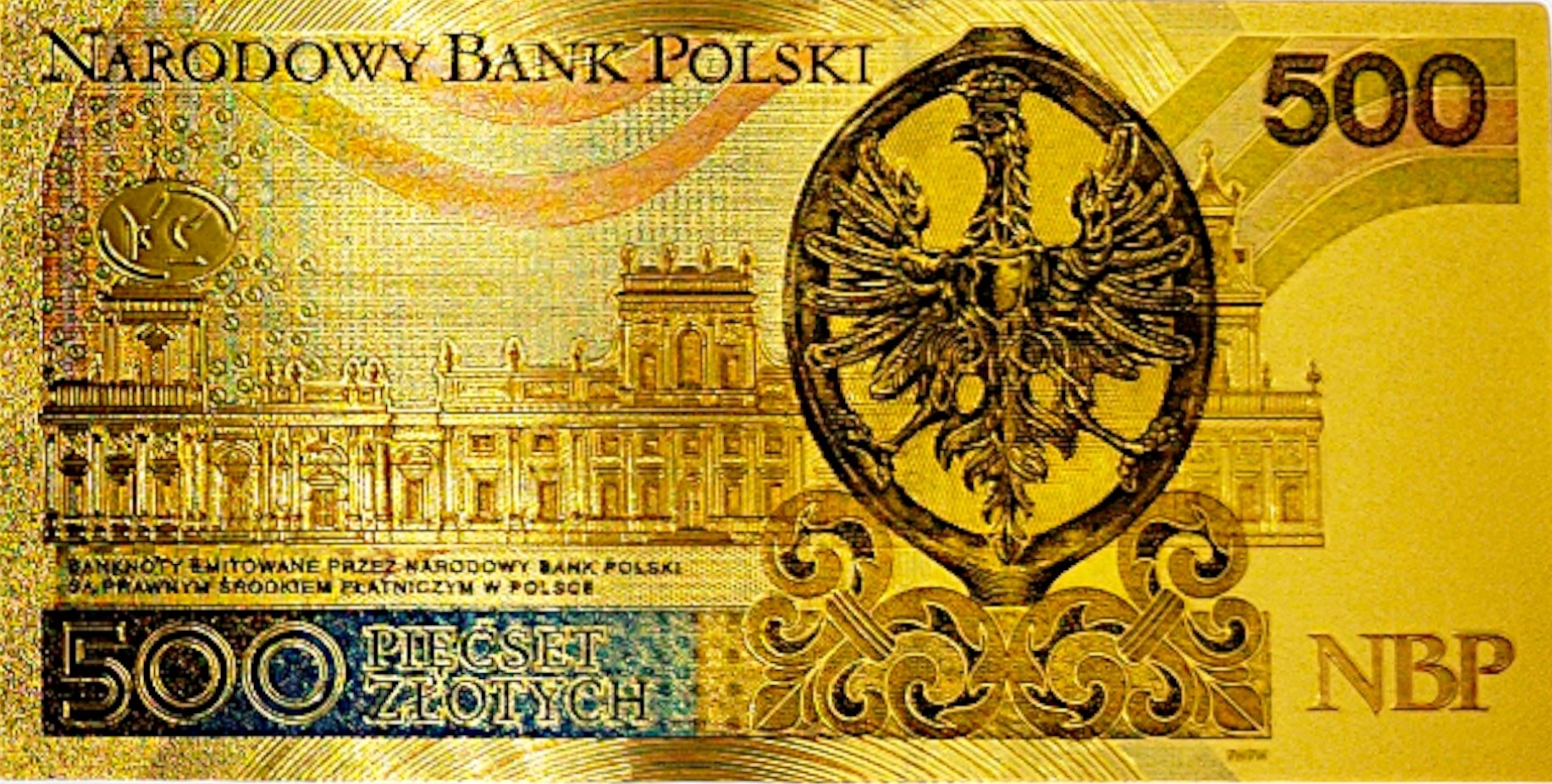 Красивая копия польской банкноты самого высокого достоинства, изготовленная из ПВХ и покрытая золотой фольгой.