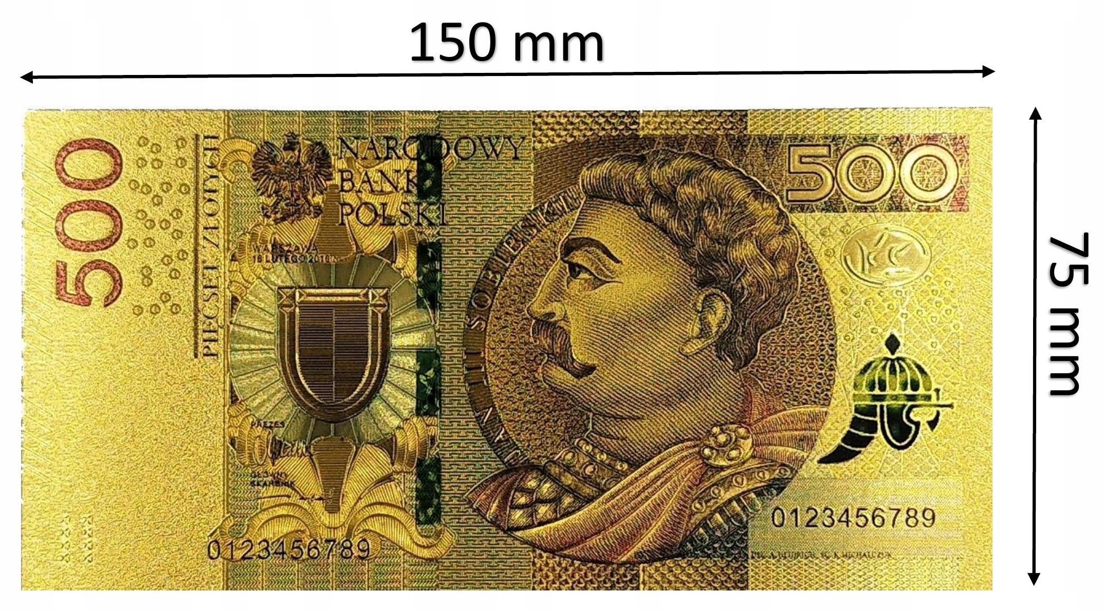КОЛЛЕКЦИОННАЯ БАНКНОТА 500 ЗЛОТИЧ ЯН III СОБЕССКИЙ ПОЗОЛОЧЕННАЯ КОЛЛЕКЦИОННАЯ БАНКНОТА ИЗ ПВХ