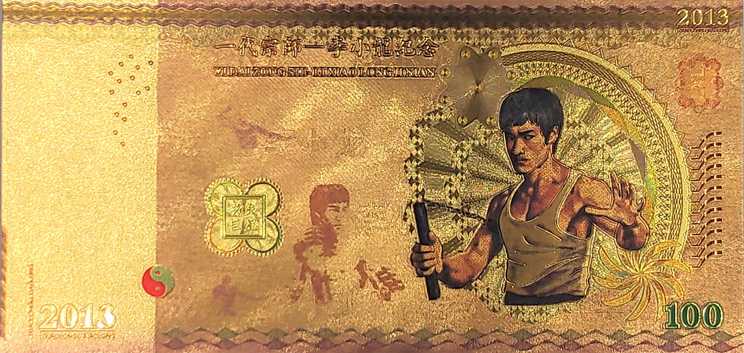 Красиваяколлекционная банкнота с изображением Брюса Ли.