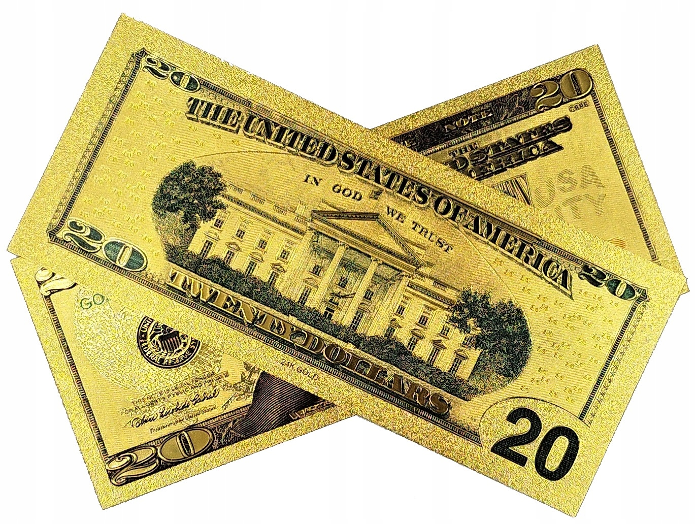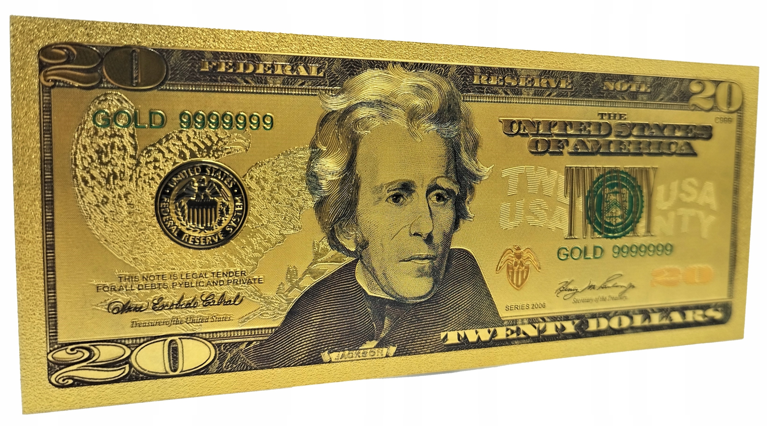 Красива позолочена купюра колекціонера номіналом 20 доларів