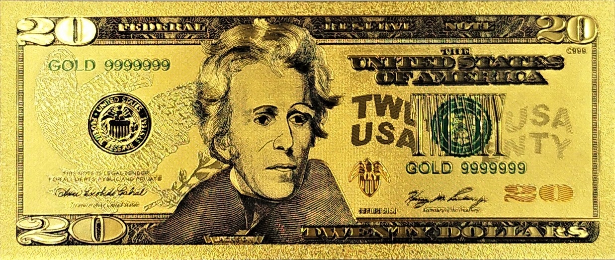 КОЛЛЕКЦИОННАЯ ПОЗОЛОЧЕННАЯ БАНКНОТА 20 ДОЛЛАРОВ США
