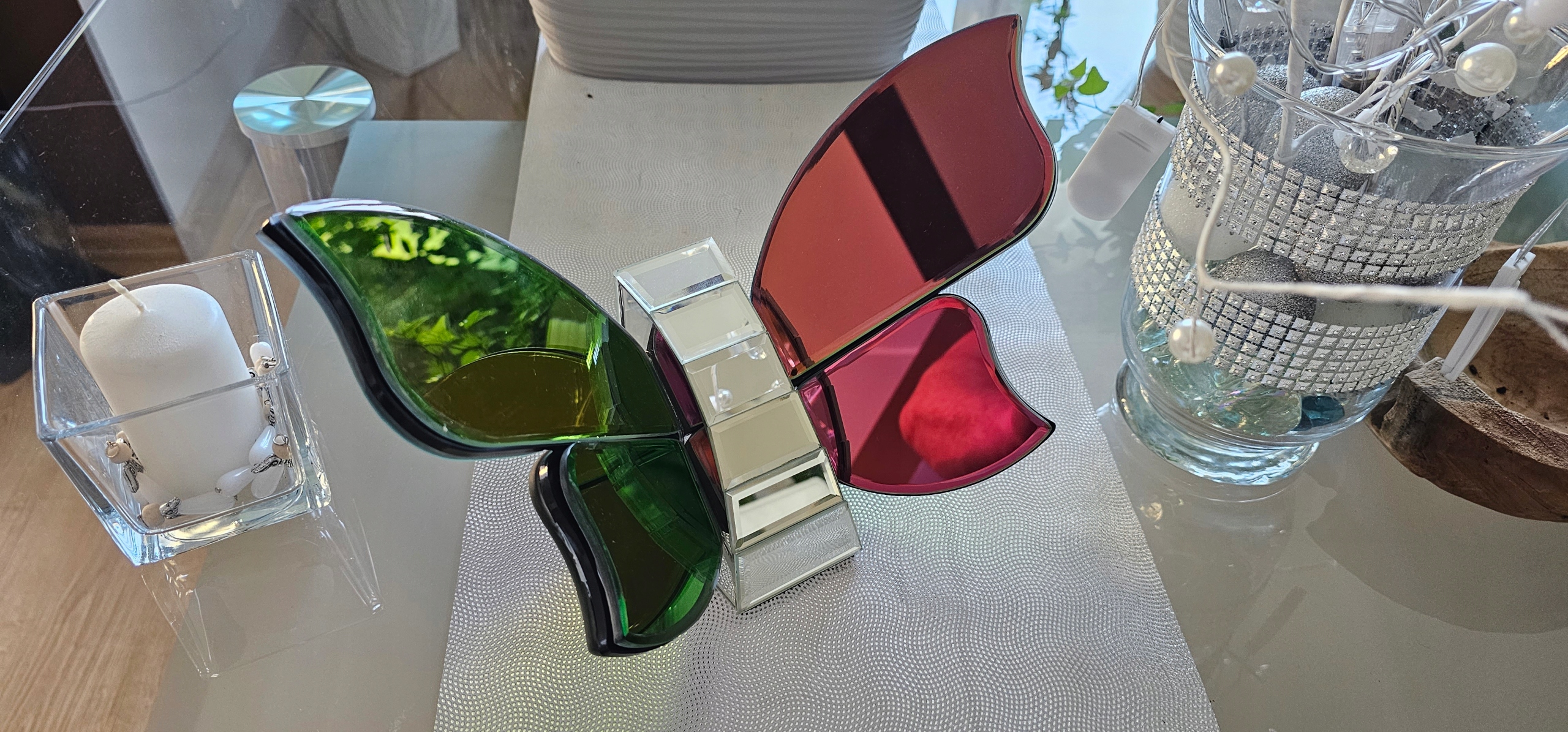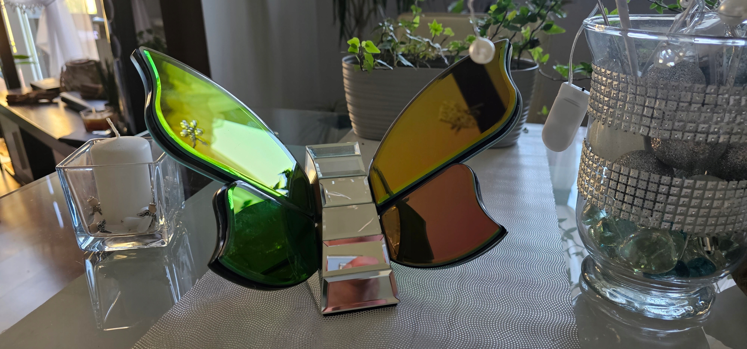 1x декоративный объект «Бабочка» из зеркального стекла.