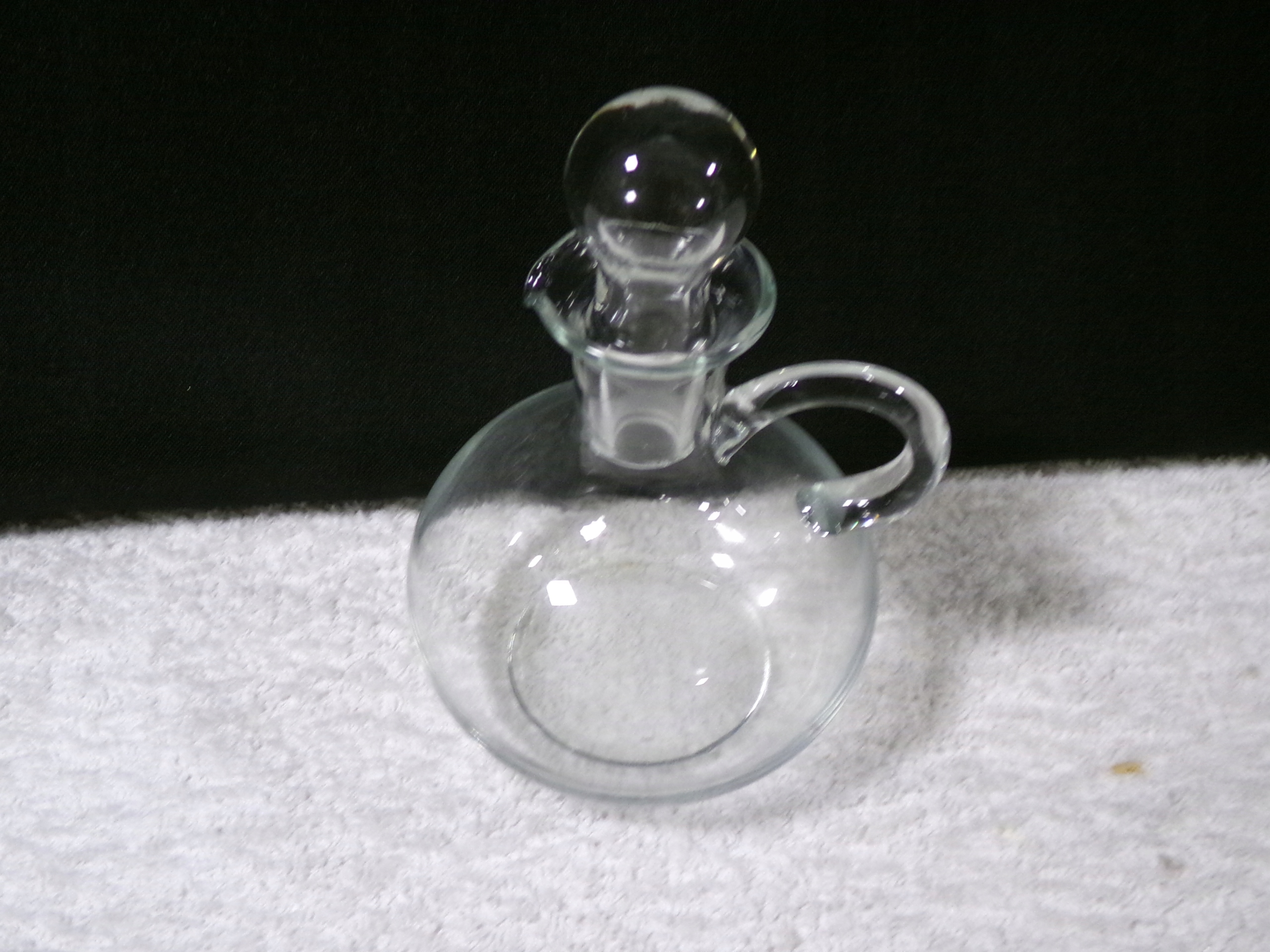 Красивый стеклянный графин с высотой 14,5 см, диаметр 10x8,5 см, емкость 0,2 литра, весом 0,21 кг. Очень хорошее состояние, без повреждения.