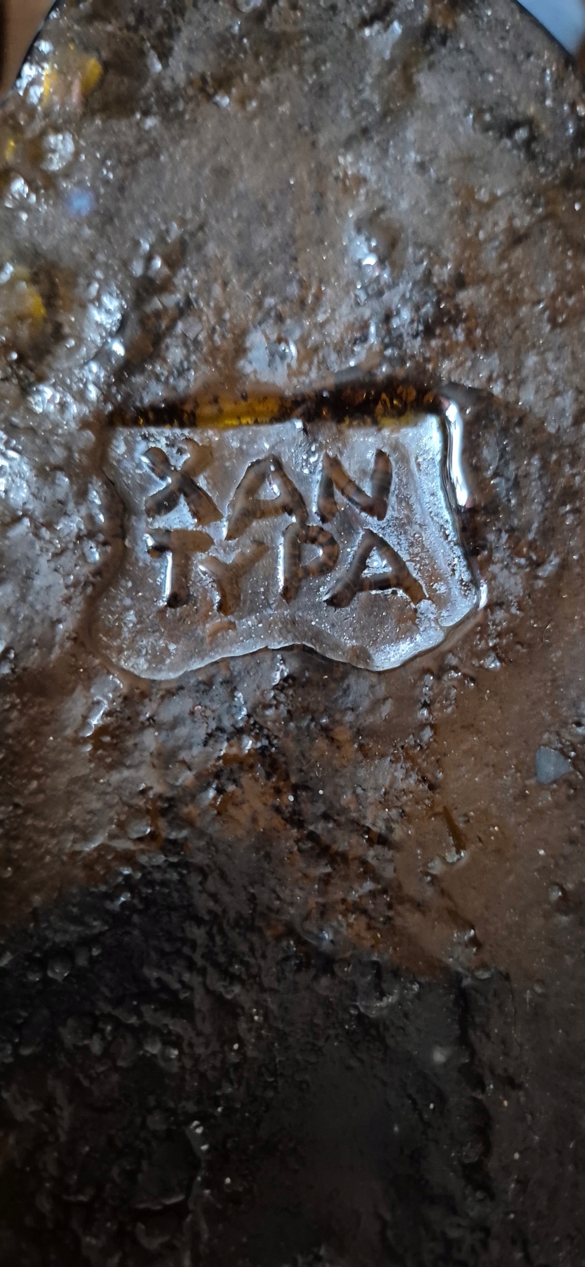 Красивая старая стеклянная декоративная бутылка, стекло с подписью T14